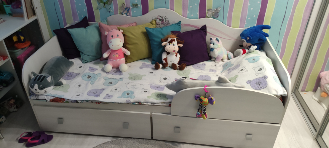 Отличная кровать, советую! Ящики огромные! Кровать крепкая, рада,что дно не реечное! Особенно порадовало,что все детали были пронумерованы! Собрать смогла сама!! Без помощи мужчин! Только приготовьте шуруповерт! А так сама собрала за 3 часа. Можно быстрее, но нужен опыт) Вторую уже соберу за 1,5 часа. Рекомендую кровать и данный сайт. Сначала смутило,что предоплата (если по карте), но решила,что сумма не та, чтобы не рискнуть. Оказалось риска нет совсем! Все честно! Только бы доставку еще бы оперативнее... Пришлось ждать 3 дня доставки, но все в срок. Водитель очень общительный и вежливый, давно не встречала таких среди водителей! Все на высшем уровне!