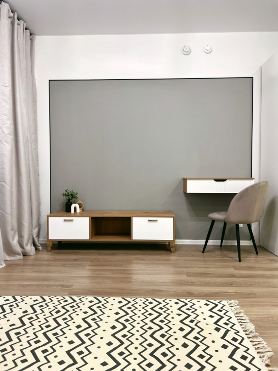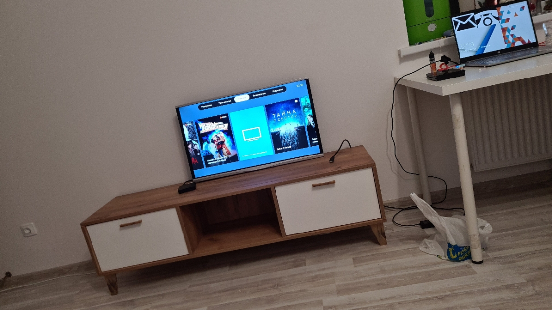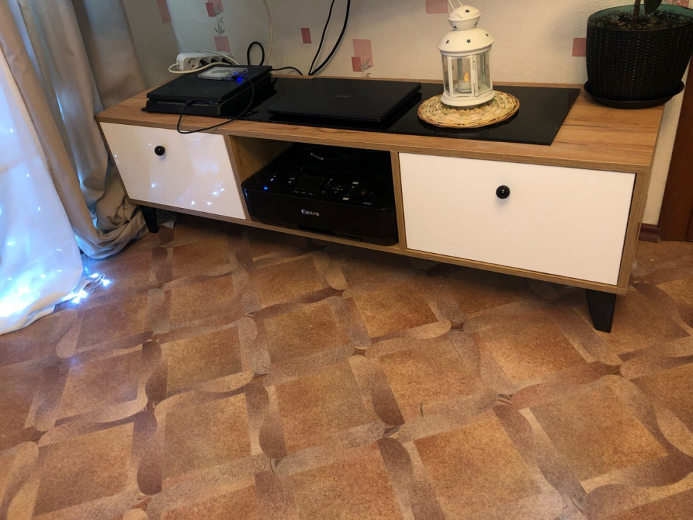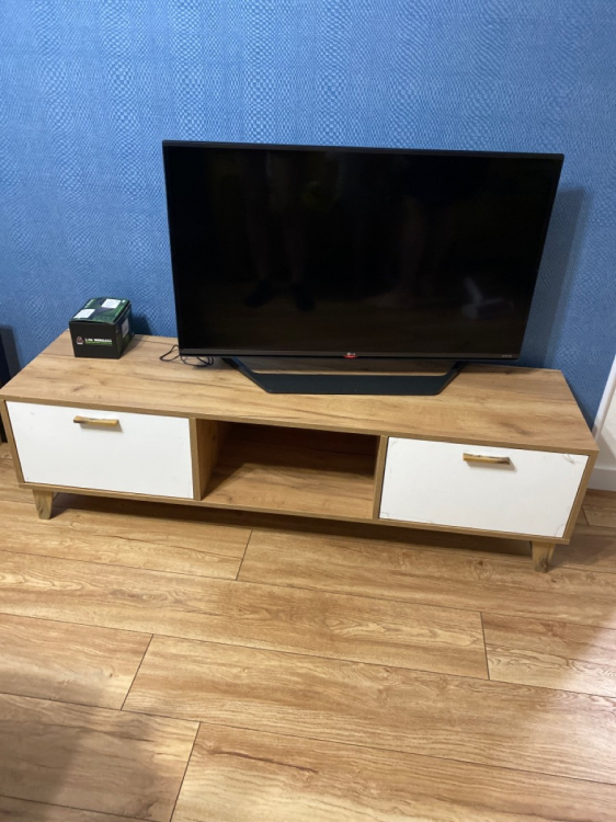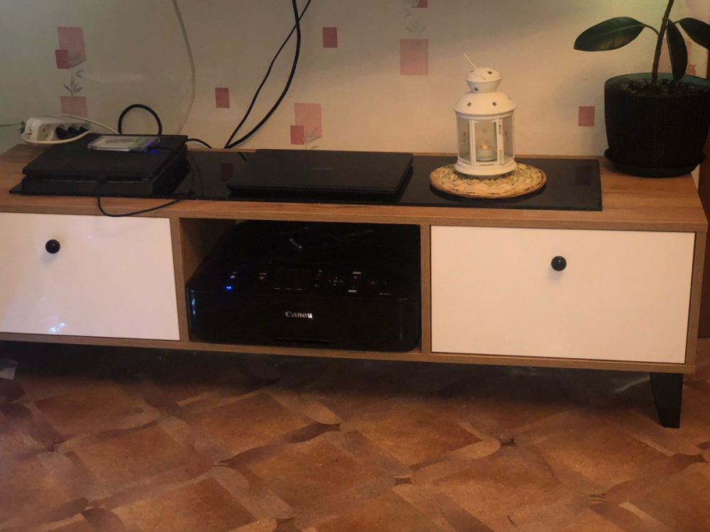Хорошая Тв-тумба. Не возникло сложностей при сборке, детали довольно точно сделаны, подготовленные насверленные отверстия все хорошо совпали. Приятная расцветка у частей под дерево-тёплый светлый оттенок, белые фасады глянцевые. Ножки немного выбиваются по цвету и выдают, что это пластик. Возможно заменим на деревянные ножки позже. Доставка была быстрой, менеджер связывался несколько раз по телефону, чтобы обговорить сроки, привезли все в срок.; Достоинства: Приятная расцветка, неплохая фурнитура для данного ценового сегмента.; Недостатки: Для тех, кто не собирал мебель ранее, могут возникнуть трудности с инструкцией. Пластик на ножках немного отличается по цвету от основного фасада.