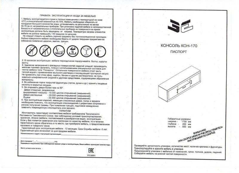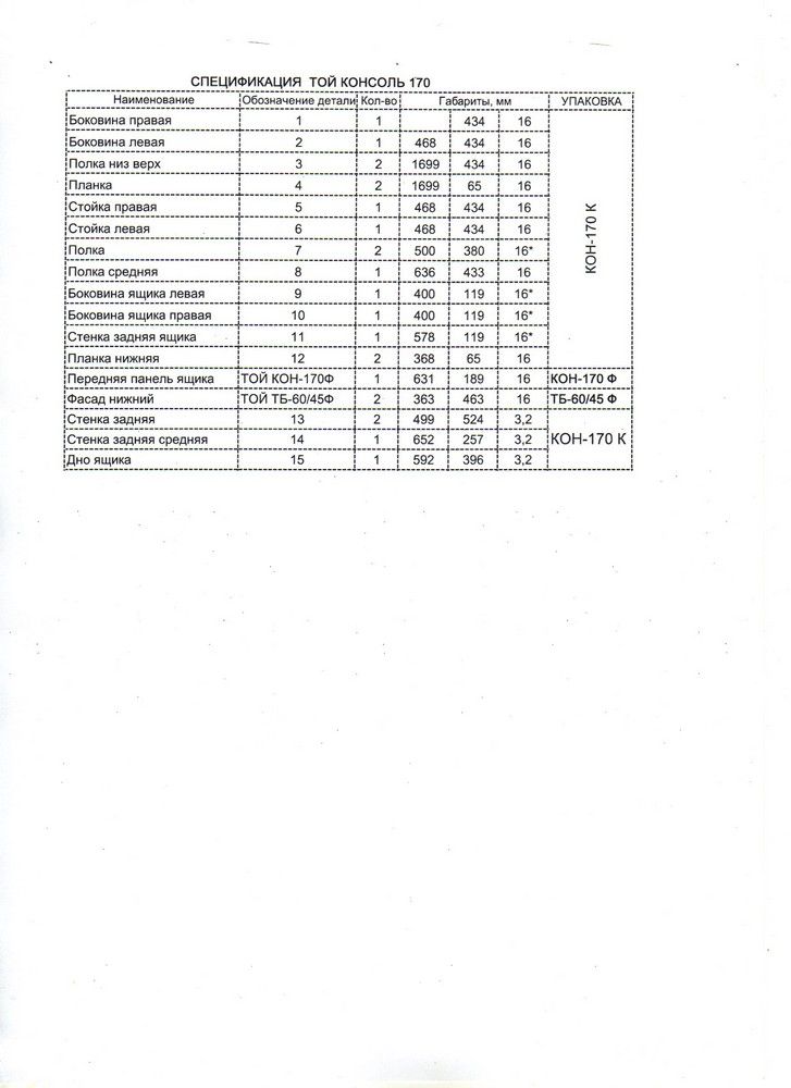 Ширина 170 см x Глубина 45 см x Высота 50 см