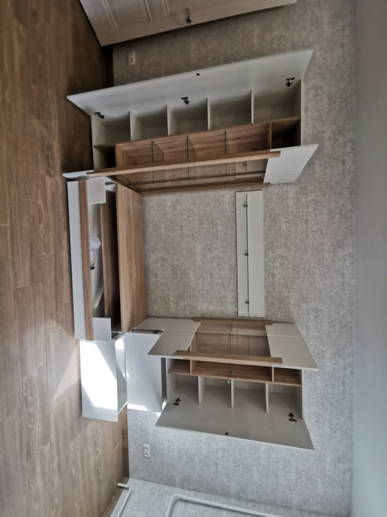 Заказывал комплект: Витрина Куба 1701 дуб сонома / белый глянец; Витрина навесная Куба 1702 дуб сонома / белый глянец; Полка Куба 1710; ТВ-тумба Куба 1705 дуб сонома / белый глянец; Тумба Куба 1706 дуб сонома / белый глянец. Отличный комплект получился. Качество очень приличное. Собирается без затруднений - инструкция понятная. Рекомендую к приобретению.