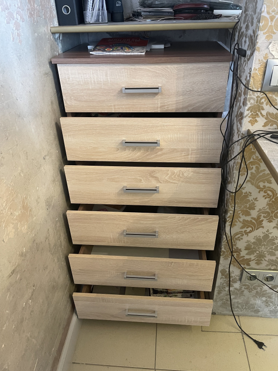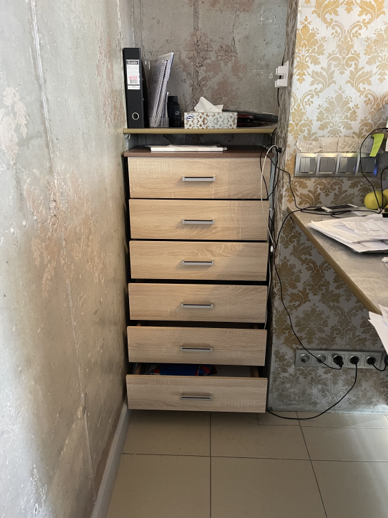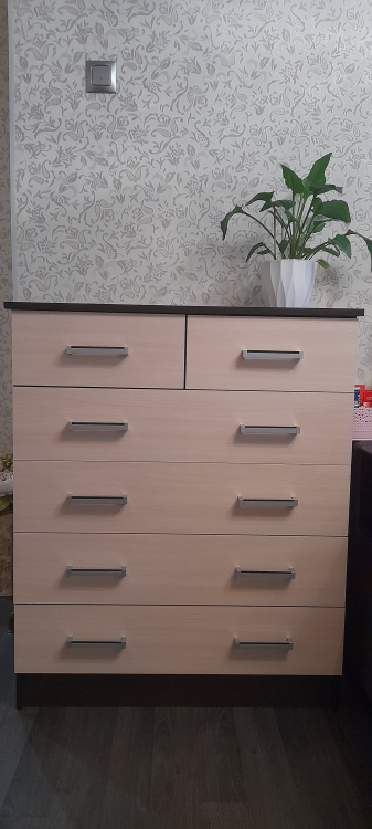 Комод привезли в назначенное время. За 40 мин до часа доставки позвонил экспедитор и сообщил что вскоре будет. На следующий день приехал мастер сборки. Время на сборку-около 1 час 15 мин. При сборке оказалось,что не хватает 2 деталей. Мастер все сам заказал. Через неделю привезли недостающие детали. Комод недорогой. Но качественный. Запаха нет. Я довольна заказом. Планирую ещё заказать мебель.