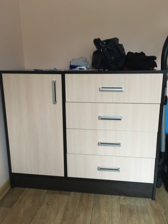 Выдвижные ящики установлены на роликовых направляющих.Максимальная распределенная нагрузка для выдвижных ящиков на дно — 8-10 кг.Заранее созвонились, определились со временем доставки, удобной мне. Созвон перед доставкой . Доставка точно в срок. Все детали на месте, согласно перечня. Подробная инструкция. Сборка проблем не составила. Комод аккуратный и функциональный.