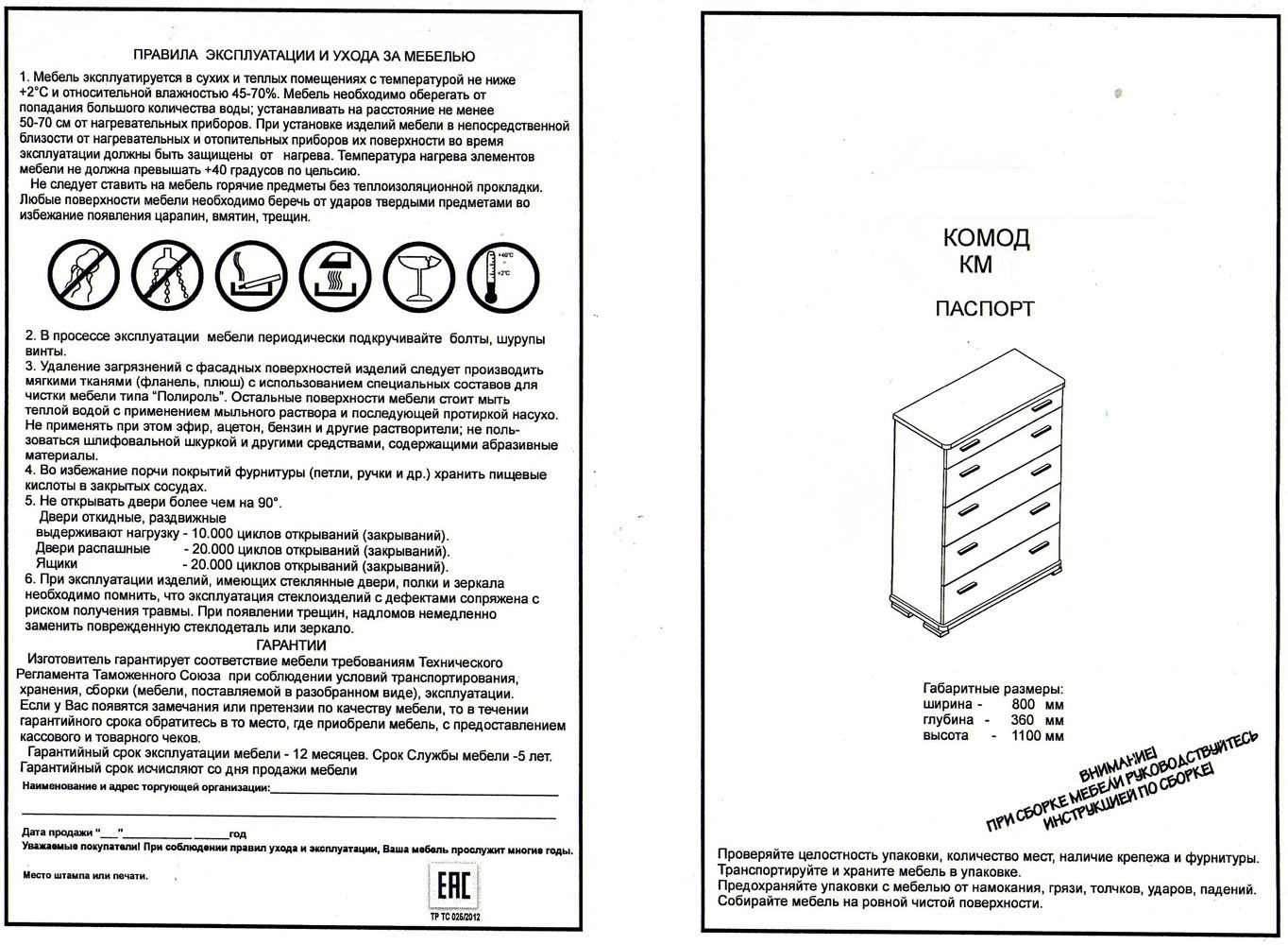 Гарантия на товар - 12 месяцев