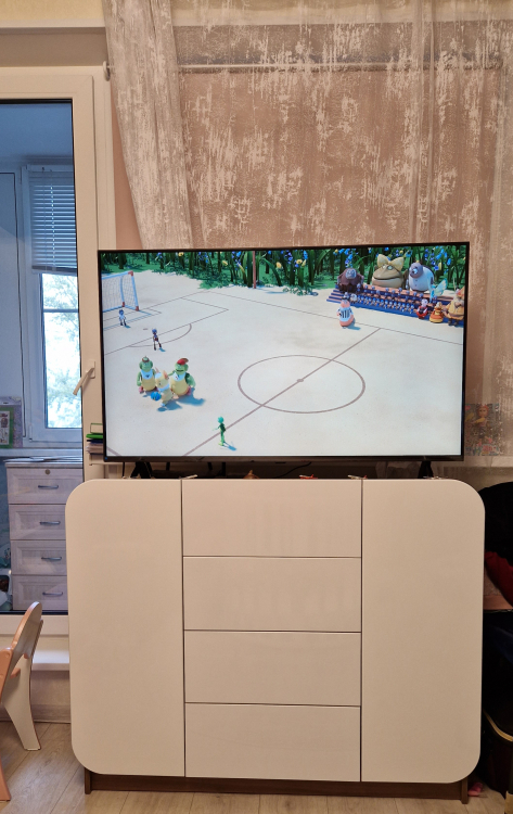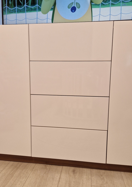 Комод обалденный, смотрится шикарно. Мы хотели, чтобы был повыше, телевизор спрятать от ребёнка, и главное, чтобы не шатался. С этими зададами отлично справился. Ящики очень вместительные, удобные. Единственное, муж намучался собирать его, по милллиметрам отмеряли, а иначе перекосы видны. Лучше конечно, чтобы сборщик собрал. Направляющие хорошие, закрываются шкафчики очень мягко. Мы с мужем довольны!
