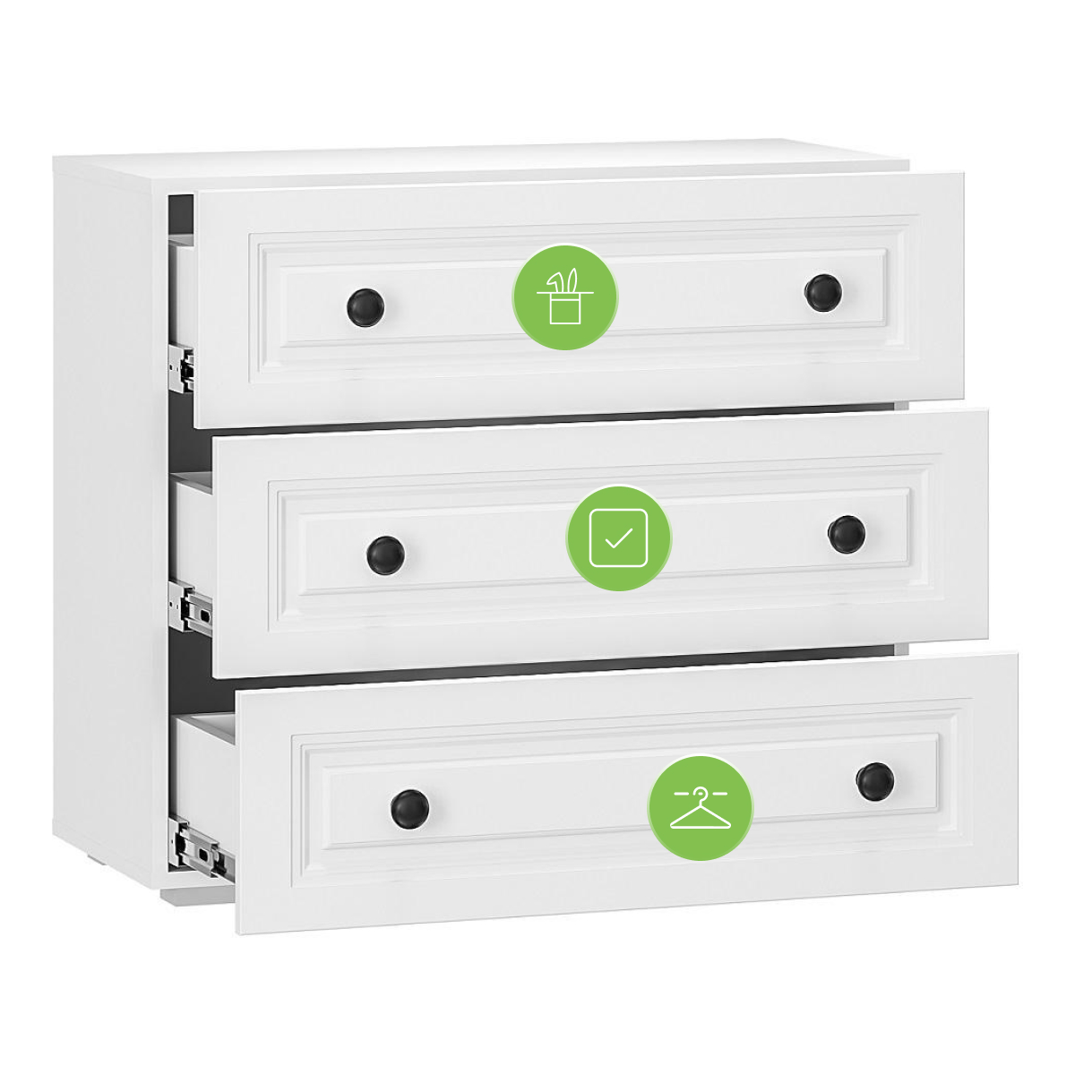 Вместительные ящики оснащены шариковыми направляющими плавного и бесшумного выдвижения.