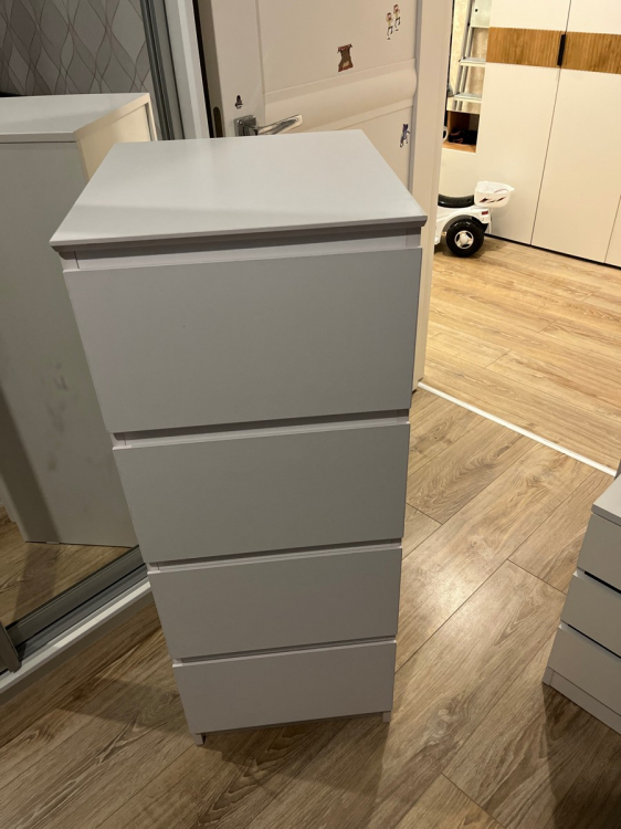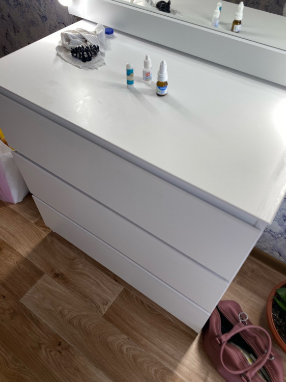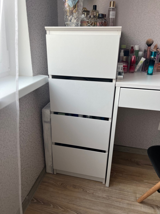 После заказа комода мне позвонили и договорились на счёт доставки. Привезли за 2 дня. Спасибо большое службе доставке и конкретно Геннадию. Ровно час от момента звонка о доставке и звонка в дверь. Сам комод компактный, внешне стильный, лаконичный. Внешние уголки немного скруглены. Ящики не особо глубокие - верхняя декоративная планка съедает полезное пространство. Но для хранения учебников, заколочек и рукоделия вполне достаточно. Для хранения одежды или чего-то объёмного думаю будет маловат. Дочь довольна ; Достоинства: Компактный; Недостатки: Не обнаружила