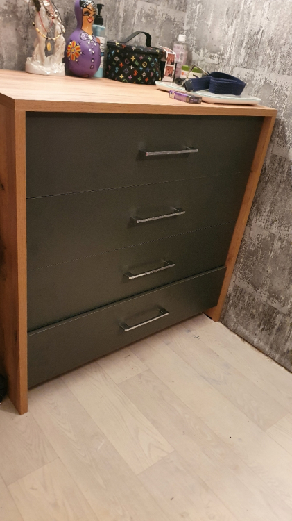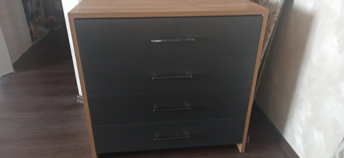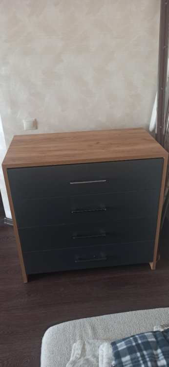 Качество лдсп не очень, кромка хрупкая. Качественные направляющие, ручки. Прост в сборе (в моем случае, даже отверстия под направляющие соответствовали действительности). В целом тысяч за 5 был бы отличный комод, а так можно поискать среди конкурентов.; Достоинства: Внешний вид, габариты, фурнитура; Недостатки: Качество материалов, фасад немного пошорканный и на одном ящике заметный скол прямо по середине.