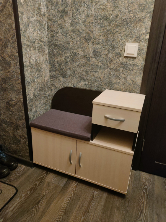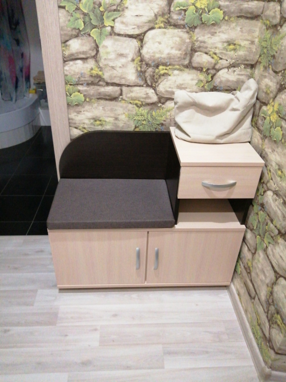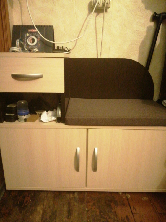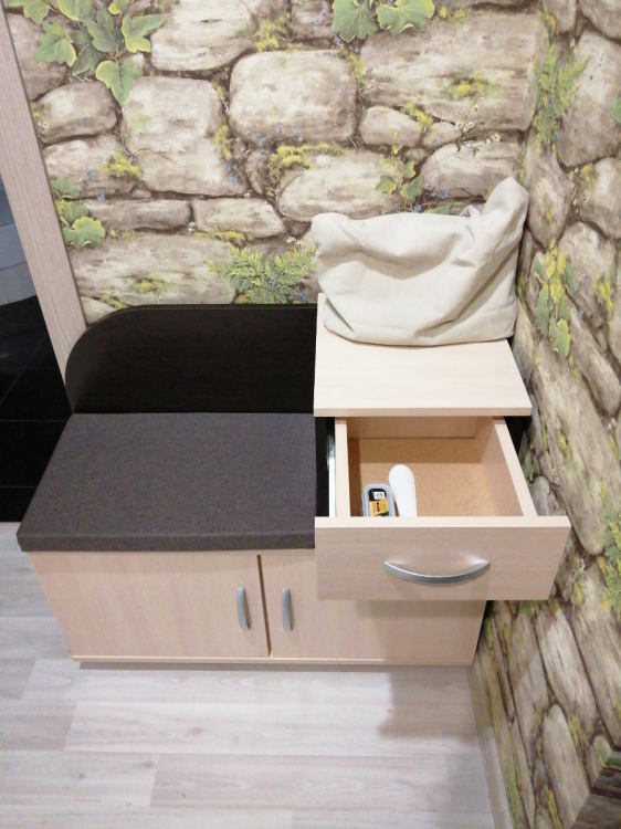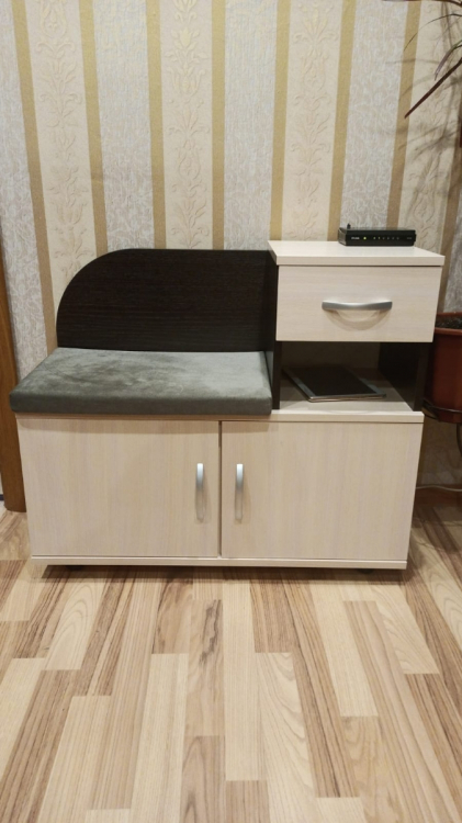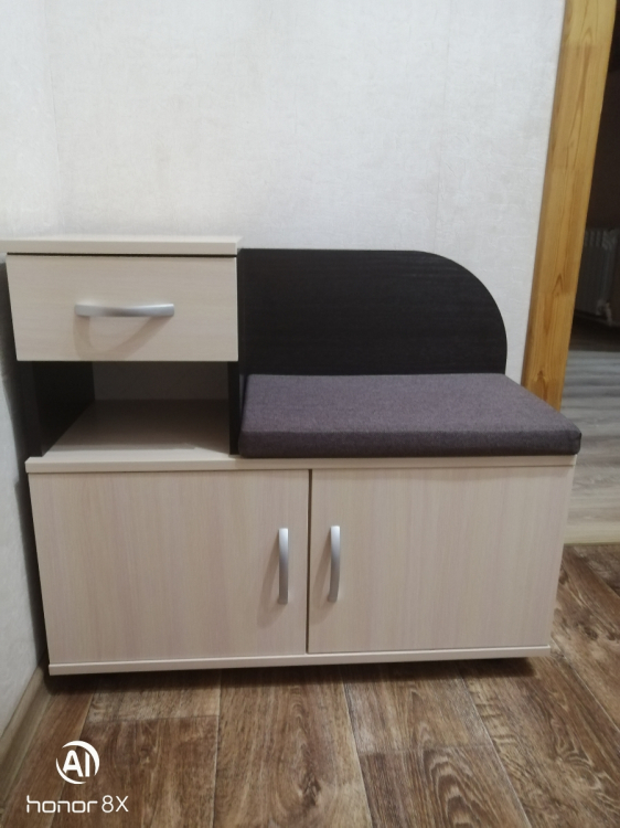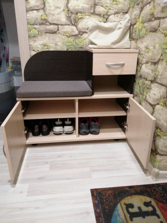 Долго выбирали новую обувницу. Здорово, что выбрали именно эту. Есть ящик, полка и место для обуви. Внутри полку можно снять, если нужно поставить высокую обувь. Сидение мягкое и на липучках - не съезжает. Всё сделано очень качественно.; Достоинства: Качественная. Очень удобная инструкция. Хорошая упаковка и сервис.