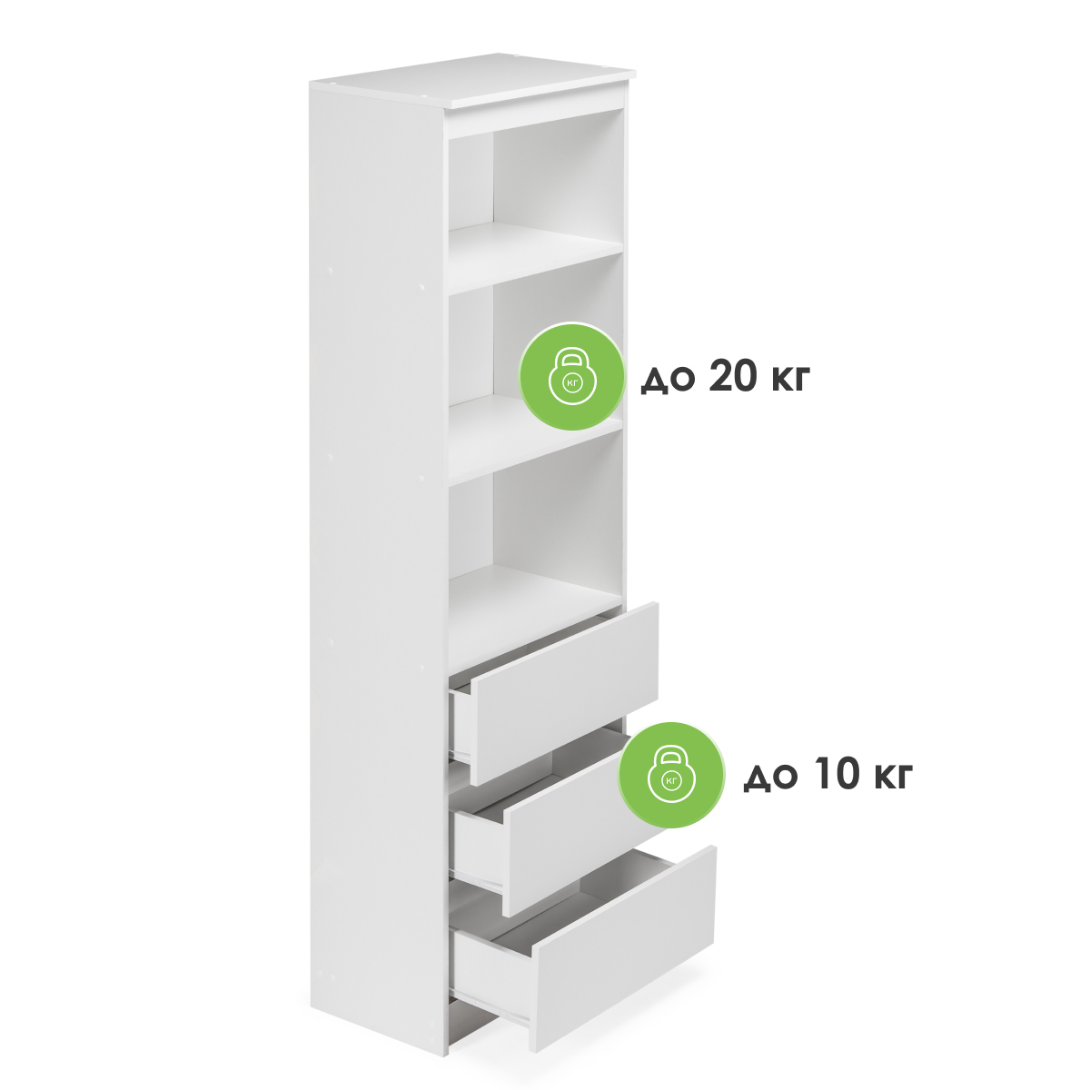 ● на одну полку до 20 кг.