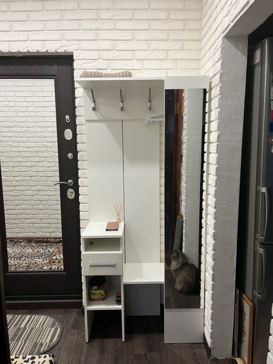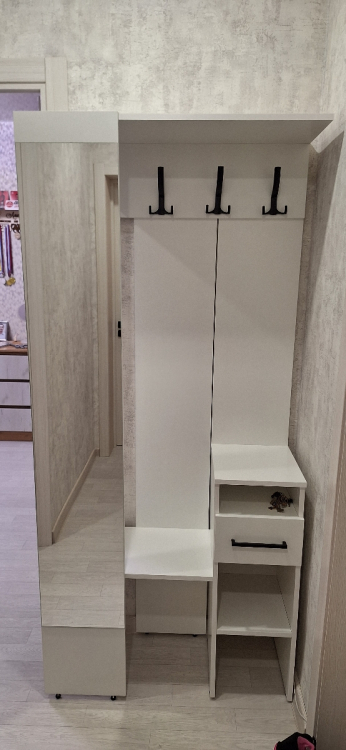 Готовая прихожая имеет универсальную сборку.Отличная прихожая для маленького помещения. Пришла быстро и очень хорошо упакована. Без сколов. Зеркало было в отдельной прочной упаковке, на упаковке была пометка, что внутри хрупкая деталь. Собирается прихожая на любую сторону. Только нужно немного помучиться. Или воспользоваться услугами специалиста, чтобы было быстрее. Нам очень хотелось побыстрее, поэтому собирали сами. К покупке рекомендую.
