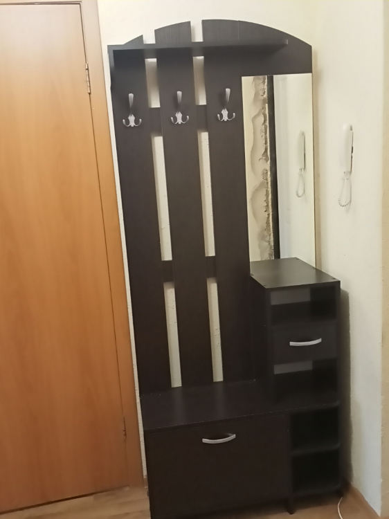 идеально вписалась в маленькую прихожую. Приятный цвет.; Достоинства: аккуратная,компактная прихожая для небольшого пространства. д Достаточно места доя хранения обуви,есть небольшой выдвижной ящичек и открытые полочки. 3х вешалочек достаточно для маленькой семьи.; Недостатки: нет.