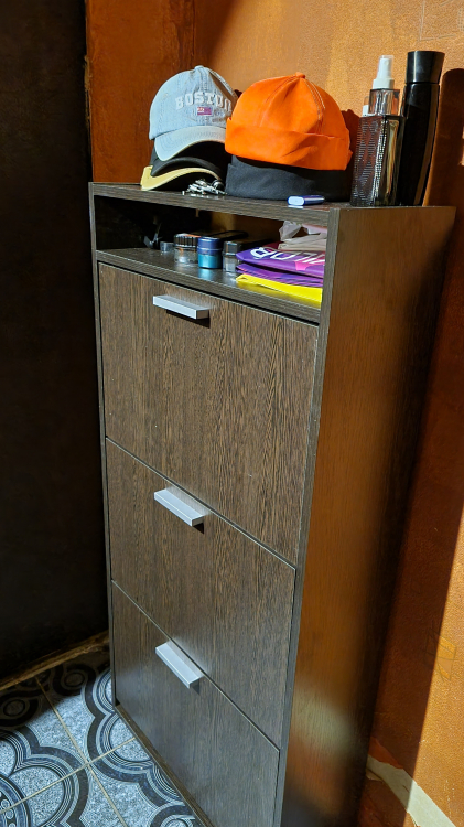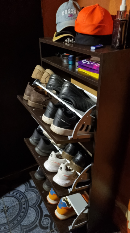 Давно собирался "избавиться" от огромного количества своей обуви, наконец решился. Выбирать долго не пришлось, главным критерием были габариты, позволяющие вписать обувницу в узкое пространство прихожей, цвет тоже был выбран моментально - он гармонировал с цветом дверей. Оформил заказ быстро, оплатил после подтверждения менеджером тоже без проблем, доставили до двери через 3 дня. Решил собрать самостоятельно, не потому, что экономил, а просто из интереса к собственным способностям. По имеющейся схеме сборки обувница была собрана и установлена на своё место за полчаса. В результате 12 пар обуви легко уместились на трёх полках, к сожалению, только половина от имеющейся обувки. А поэтому, совершенно не задумываясь, решил приобрести ещё один точно такой же шкафчик, благо место для него справа осталось достаточное. В заключении надо сказать, что качество комплектующих хорошее, никакого брака, сколов, царапин. Фурнитура в достатке. Ну, и стоимость обувницы очень приемлемая! Рекомендую!