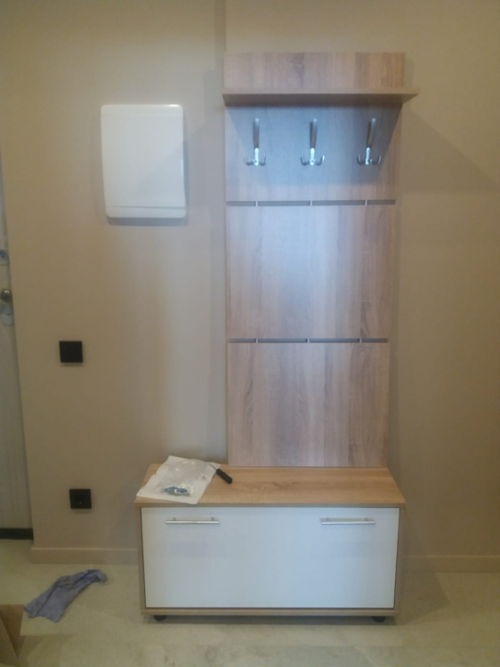 Вешалка изготовлена из высококачественной ДСП 16мм, края отделаны кромкой ПВХ 0.4мм.Компактная вешалка, в моё маленькое помещение вошла идеально. Упаковано хорошо пришла без дифектов.