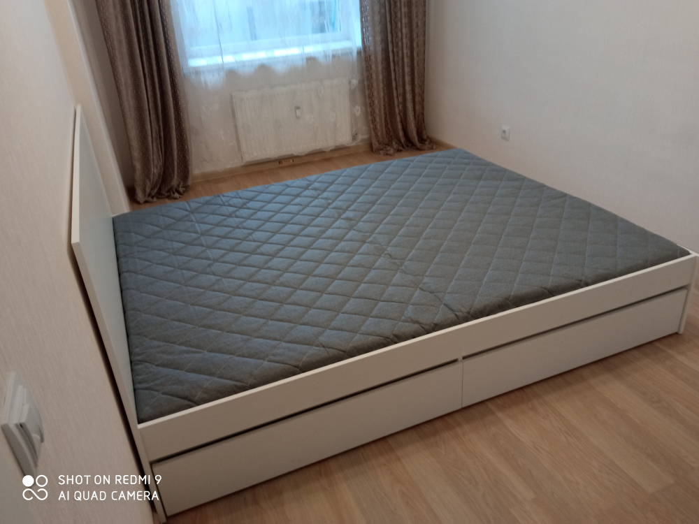 15 марта 2023 года была куплена эта кровать. Спасибо большое за быструю доставку и сборку (на следующий день). Кровать стильная, имеются два выдвижных ящика для белья. Единственный минус - это низкая высота от пола, но её можно компенсировать высоким матрасом (и не одним).
