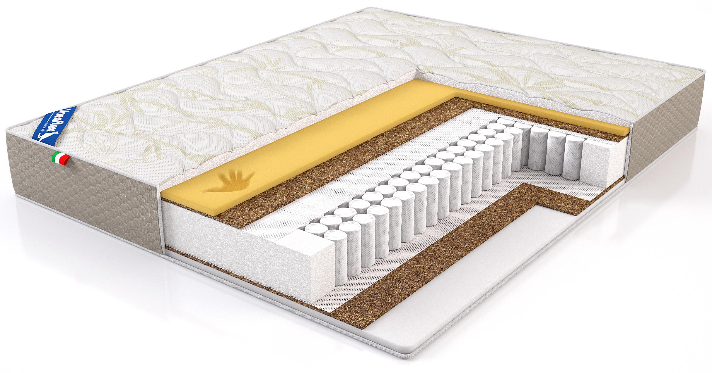 Матрас на основе армированного блока независимых пружин плотностью 256 пружин на м² (500 пружин на спальное место).Наполнение: ERGOFLEX 2 см+кокос 1 см / Memory Naturalis 2 см+кокос 1 см. ERGOFLEX - современный высокоэластичный гипоаллергенный материал. Хорошо выдерживает нагрузки, не деформируется, не вызывает аллергии, не имеет запаха.Латексированная кокосовая койра отличается экологичностью, природной эластичностью и хорошей воздухопроницаемостью, что делает поверхность матраса жесткой и упругой.Memory Naturalis - высокоэластичная пена с памятью формы, моментально и точечно подстраивается под контуры тела спящего. Чехол BAMBOO состоит из трикотажного гипоаллергенного волокна, простёганного на 300 г файбера. Файбер обеспечивает высокую теплоизоляцию и не слеживается. Является экологически чистым и нетоксичным, не впитывает влагу и запах, не поддерживает горение, способствует длительной эксплуатации.Отзывы на сайте могут публиковать только те, кто купил данный товар.
