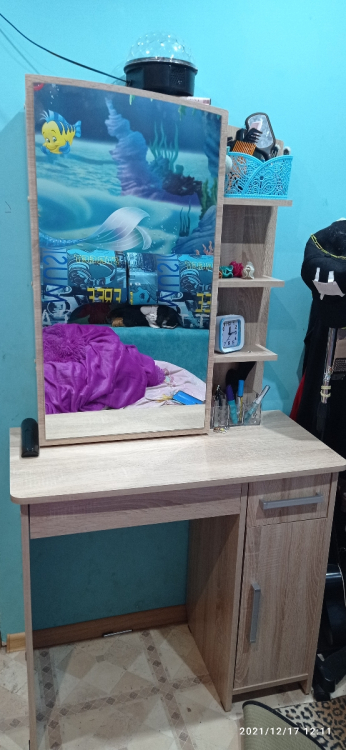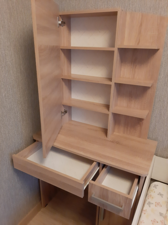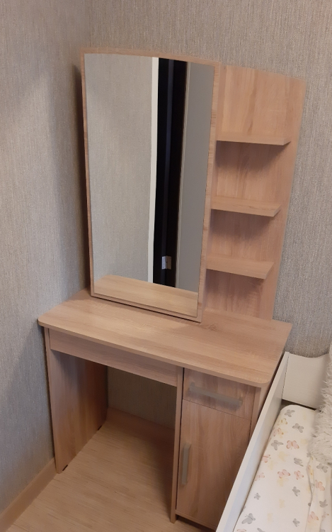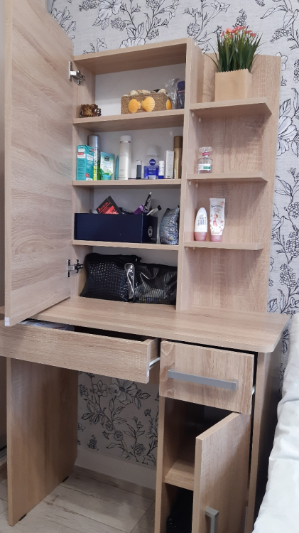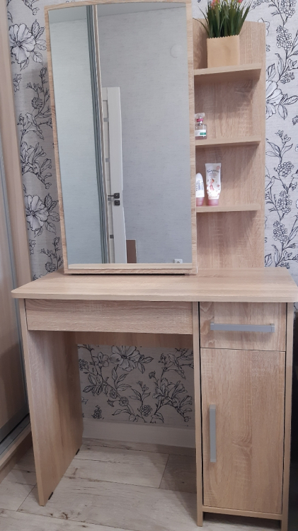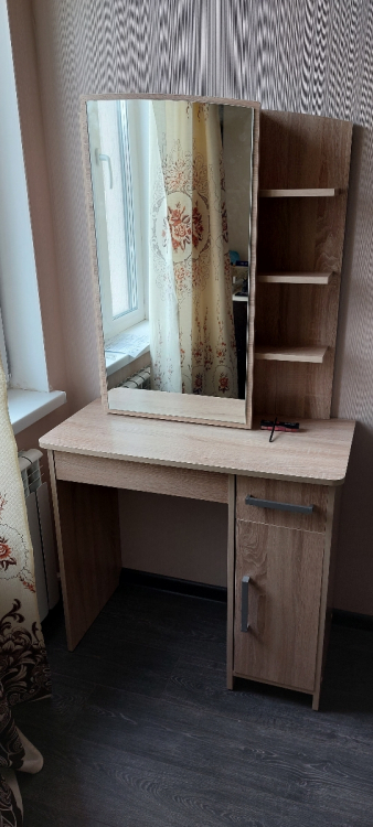 Он прекрасен!Туалетный столик мечта любой девушки,а когда он еще и продуман до мелочей,это еще большая мечта.Искала такой столик,чтоб вмещалось все мое женское добро(а его много) и наконец нашла.У него даже за зеркалом полочки!Я в восторге.Спасибо!; Достоинства: Красивый,удобный,вместительный,компактный.; Недостатки: Нет.