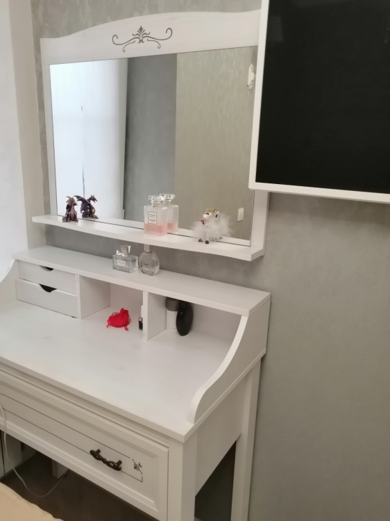 Шикарный туалетный столик. Мечтала именно о таком. Изящный. Для украшений ,косметики и прочих "штучек". Материал, конечно, хрупкий. При сборке надо быть осторожным. Прилагается (как и ко всей мебели lifemebel) подробная инструкция. Лучше приобрести сразу клей, чтобы некоторые стыки склеить. Но! Собрала быстро сама. Столик оказался довольно тяжёлый, значит устойчивый. Очень довольна! Рекомендую! Спасибо производителям!!!!