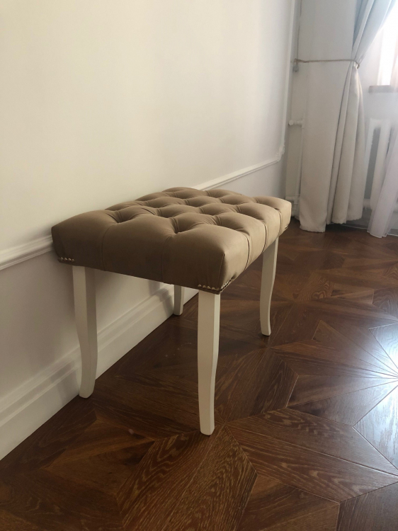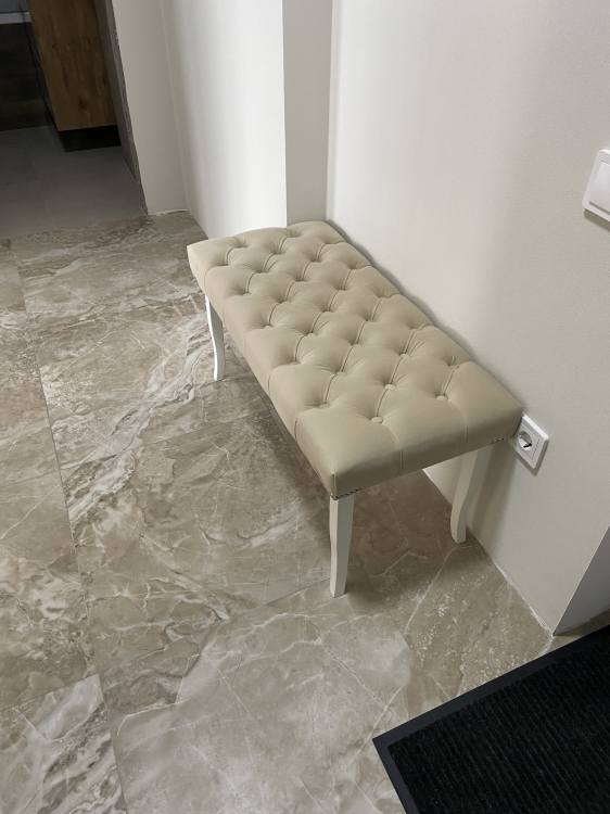 Хорошая банкетка, пришла с клепками возле ножек, в принципе не страшно. Цвет соответствует. Качество хорошее. К покупке рекомендую. Хороший интернет магазин. Оплата при получении, чек курьер отдает. Спасибо!