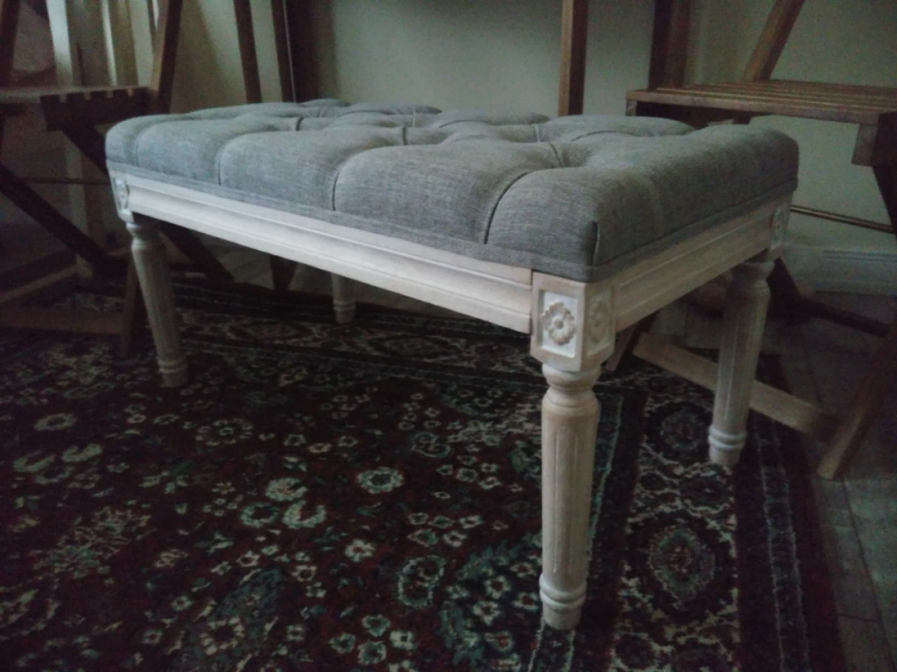 Хорошая, надежная. Ножки из массива дерева Собрали за три минуты, ножки были откручены. Сложности не добавило. Обивка под лён, красивая