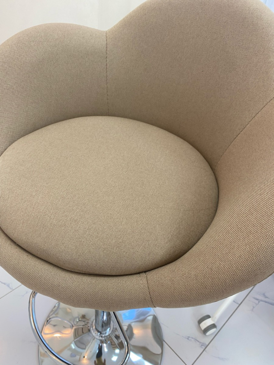 Высота подлокотников: 76 - 98 см.Качественно пошит, ткань чистится хорошо, купили ребенку, очень удобно сидит за большим столом. Молния сзади, что удобно, снять постирать.минималтная высота от пола 60см. Сиденье мягкое, удобно сидеть и покататься ребенку