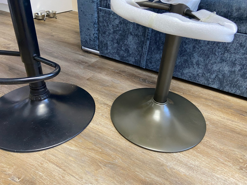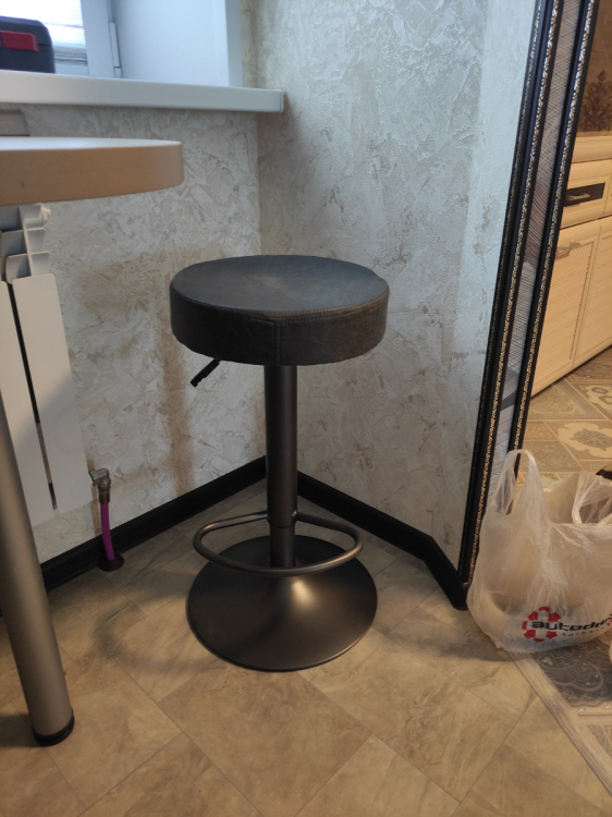 Искала именно не хромированную ножку,нашла)Если бы не выпадающие скрепки,радость была бы полной.; Достоинства: Свободно регулируется высота.Сиденение не мягкое.Если кто любит сидеть помягче,можно подушку подложить.Порадовал вес стула,очень лёгкий)Прост в сборе,подросток собрал за считанные минуты.; Недостатки: Расстроило плохое крепление срепок,которыми снизу фиксируется обтяжка((Почти все скрепки выпали(((