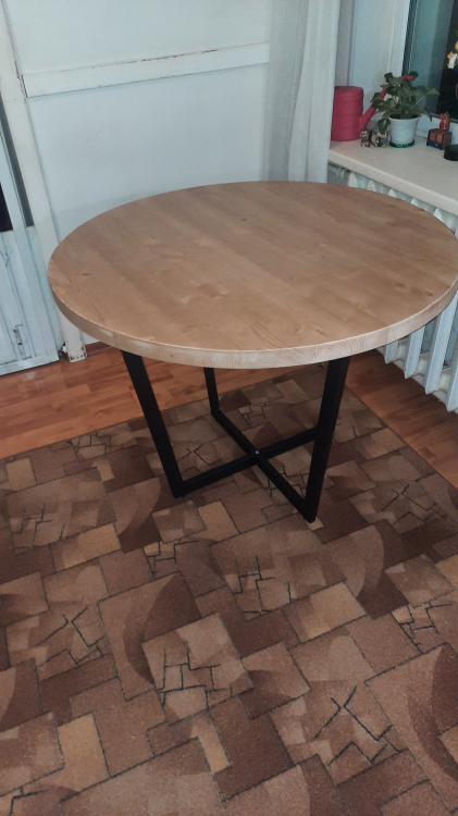 Материал столешницы: сосна натуральная 40 мм. Материал подстолья: стальной профиль 20*40 мм.