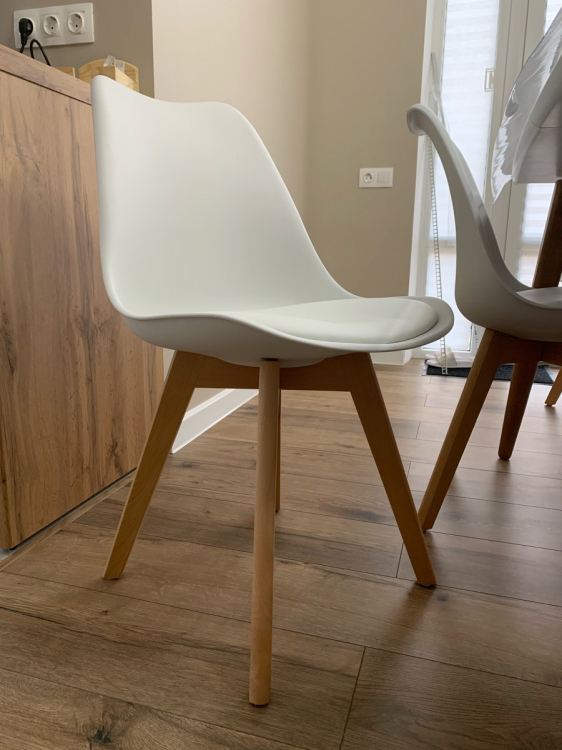 Долго выбирала стулья такого плана. Очень смущали отзывы. Решилась и не пожалела. Стулья привезли надежно упакованными: в коробке, все детали аккуратно сложены и в упаковке. Все без дефектов. Собрала сама быстро, схема сборки прилагалась. Крепления показались надежными. Пластик сидений литой, крепкий, матовый. Под моим весом спинка не прогибается. Ножки чем-то пропитаны. На зиму куплю чехлы, на эту модель много подходящих. Покупкой довольна.; Достоинства: Качественные, современные, недорогие; Недостатки: Нет