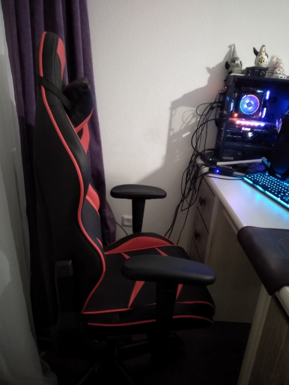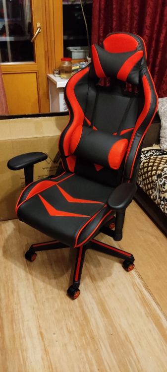 Хорошо упаковано, курьеры попадаются всегда отличные.; Достоинства: Красивое, вроде, крепкое.; Недостатки: Цвет!!! Написано, что черный с Красным!!! А оно ярко розовое!!! Я расстроена! Надо же так обманывать! Сборка получилась не быстрой, т,к. шурупы не везде соглашались заворачиваться в отверстия! Кресло не особо комфортное, жестковато. Но сын сказал, менять не будет.
