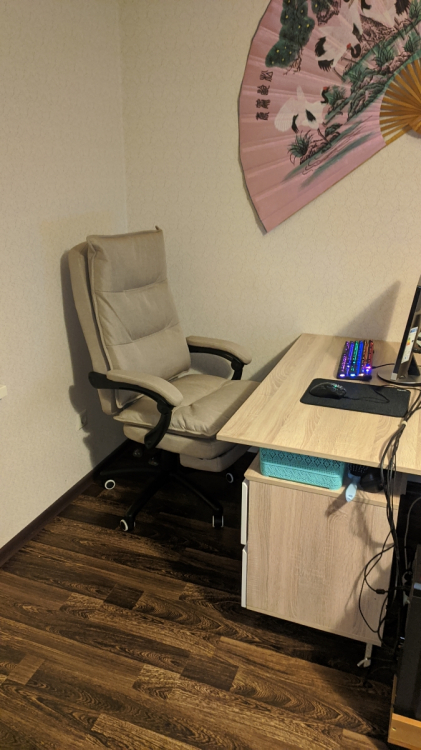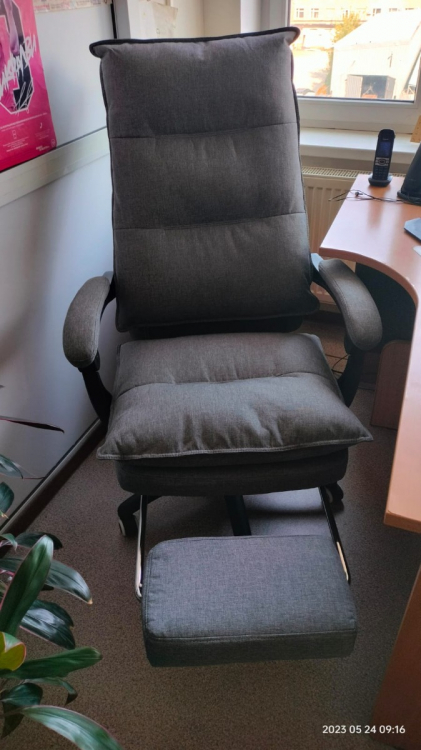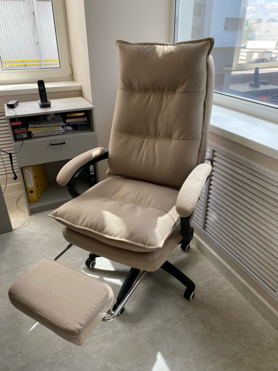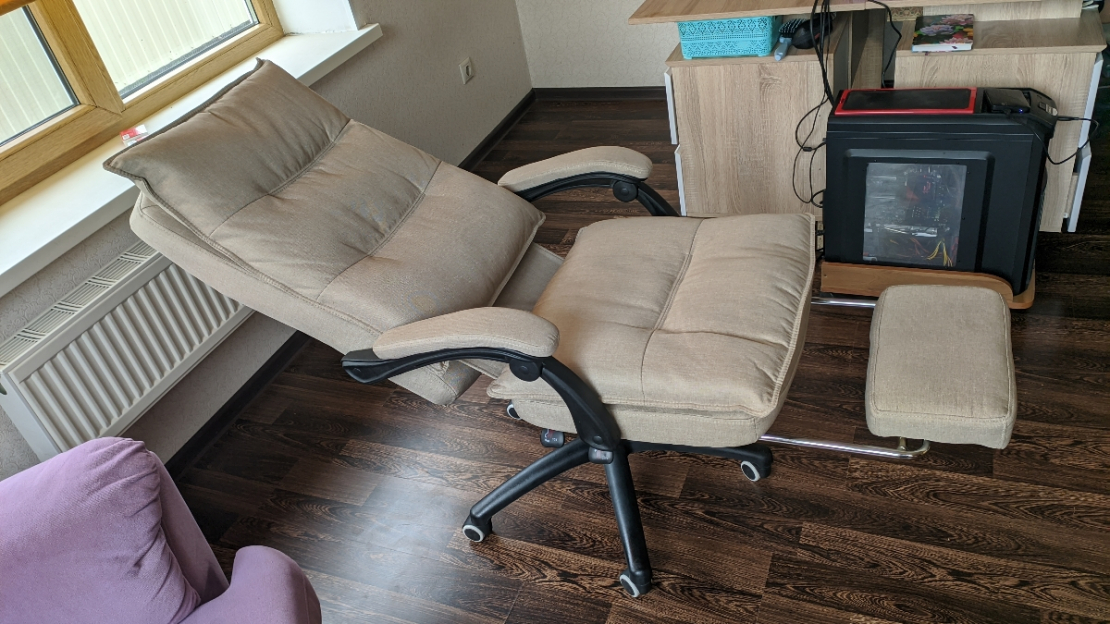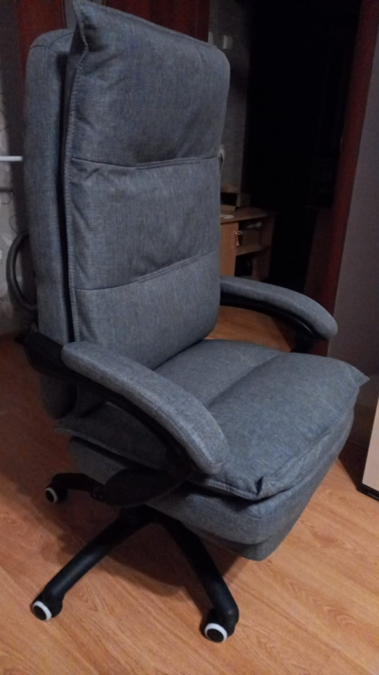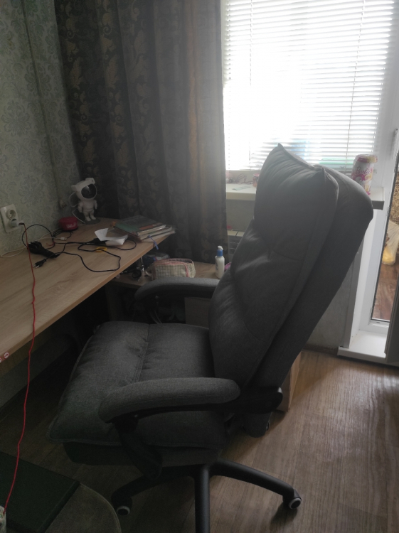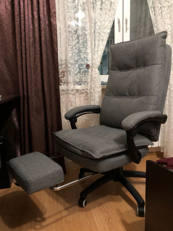 Отличный, удобный офисный стул с выдвижной подножкой, регулировкой наклона спинки и регулировки по высоте, единственно привык на старом стуле к функции кресла-качалки тут такого нет.; Достоинства: мягкий, легкий в сборке , удобная подножка. регулировка наклона спинки и регулировка по высота; Недостатки: нет функции кресла-качалки