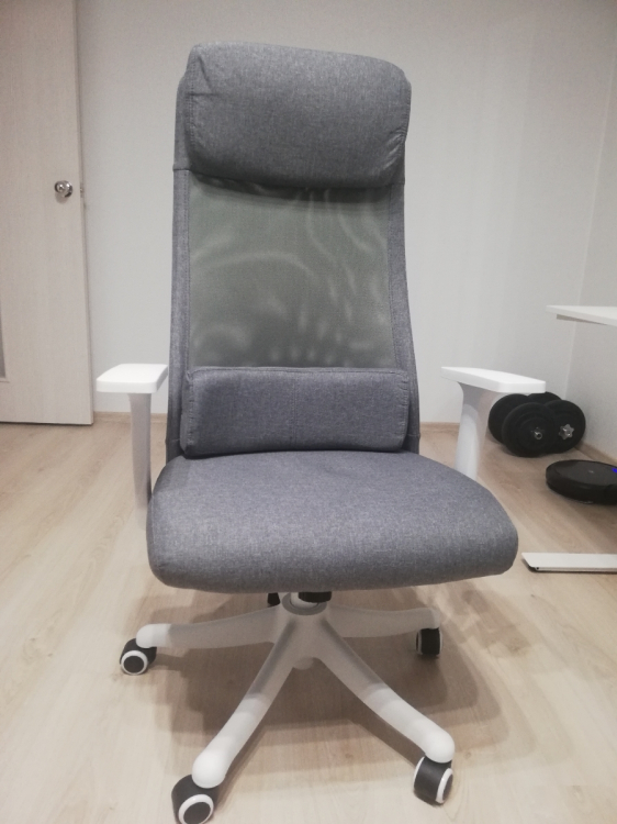 Пришло быстро, со сборкой проблем не возникло. Внешний вид отличный, соответствует, вписался в общий серо/белый интерьер комнаты. Под мой рост 190см комфортно, потребовалось пару дней на привыкание, поначалу механизм качания был жёсткий, требовалось прилагать усилия, чтобы откинуться, но так со всеми креслами было (которые использовались в офисе). Колёсики прорезиненые, тихие, не оставляют следов на ламинате, нужно прилагать усилия чтобы откатиться (это хорошо). Подушка под поясницу мне нравится, на молнии, можно снять и наверное постирать. В целом покупкой доволен.; Достоинства: Быстрая доставка. Простая сборка. Внешний вид.; Недостатки: На последнем фото, сиденье, спустя неделю эксплуатации (я 70 кг.), могли бы побольше набивки сделать (за это и снизил оценку, иначе поставил бы 5)