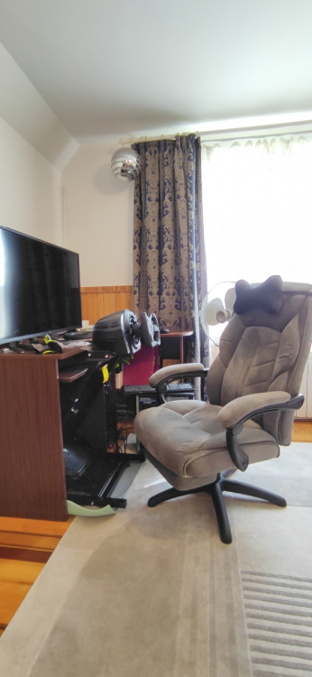 Третье кресло от Лайфмебель. Раз беру уже не первый раз -говорит о многом!!! Ранее брали в экокоже: компьютерные дочери и себе (непосредственно на сайте магазина). Оба служат 5 лет и 3 года без нареканий. Это выбирал муж по высоте , чтоб на педали давить удобно было и спина не болела. Доволен на все 100. Колесики ставить не стал, чтоб не ездило и добавил подушечку под шею. Ткань тактильно очень приятная, плотная, думаю не особо маркая. Бонус -выдвигающая подушка для ног не используется и положение лежа тоже. Все таки выбирал кресло для гонок.; Достоинства: это третье кресло от woodville; Недостатки: разве что цена кусается