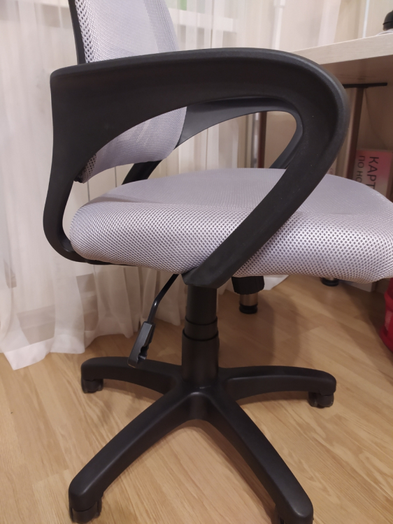 Красивое кресло, механизм качения работает исправно. Удобно сидеть, есть анатомическая поддержка спины. Пришло с пацарапанным подлокотником, заметнве большие царапины. Механизм подъема начал немного заедать спустя время; Достоинства: Красивое кресло, механизм качения работает исправно. Удобно сидеть, есть анатомическая поддержка спины.; Недостатки: Пришло с пацарапанным подлокотником, заметные большие царапины. Механизм подъема начал немного заедать спустя время