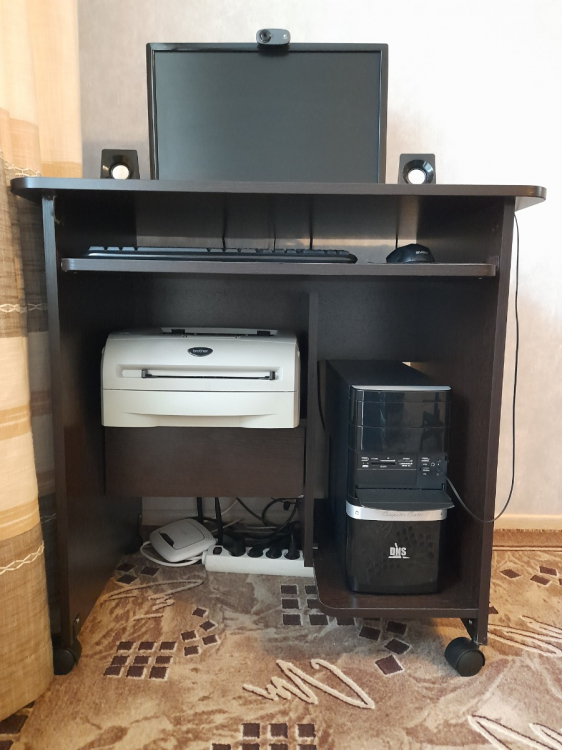 Размер полки для принтера: 27х28х39 см.Размер полки под системный блок (ШхГхВ): 55х26х50 см.