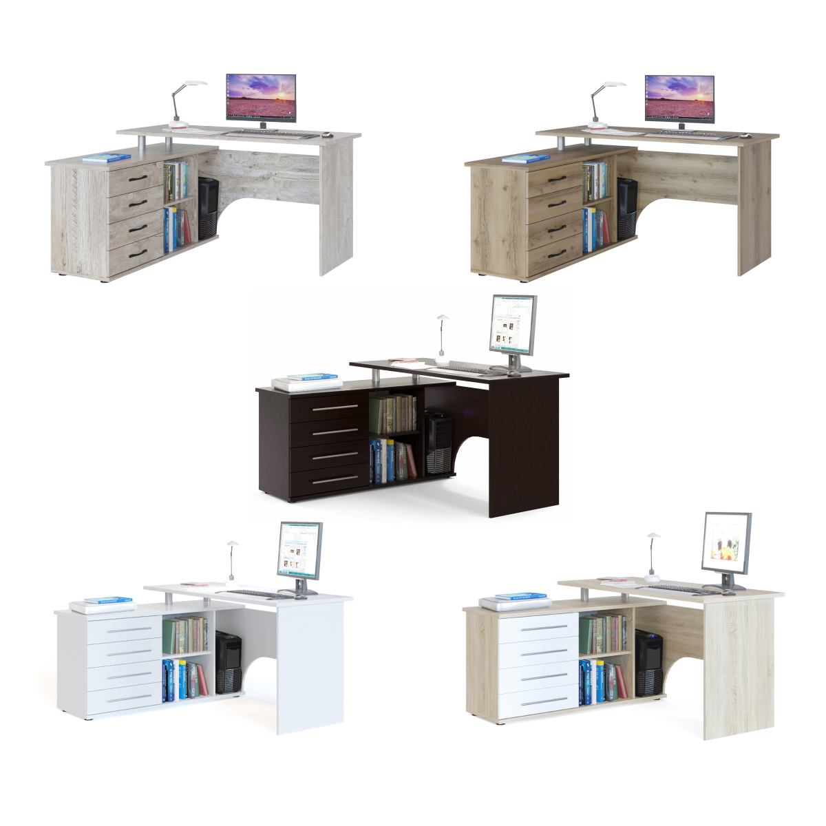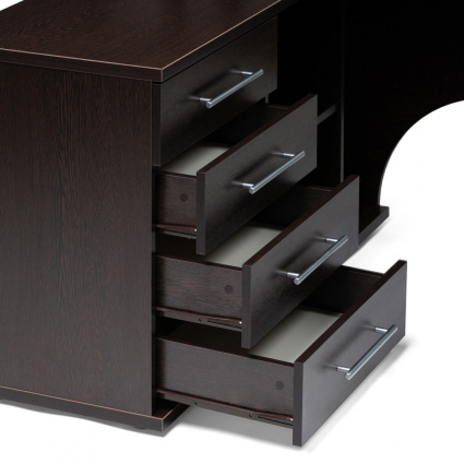 Стол может быть выполнен с правым или левым углом. Края изделия обработаны кантом ПВХ. Задняя стенка изготовлена из ЛДСП.Внутренний размер ящиков - 45,6 см х 34,6 см.