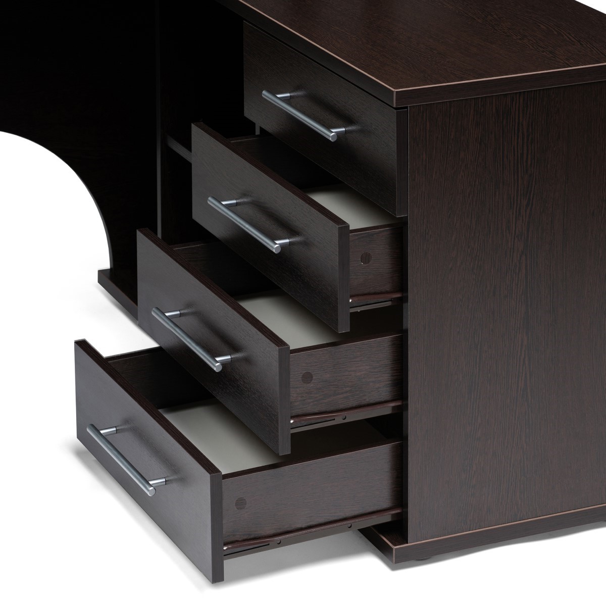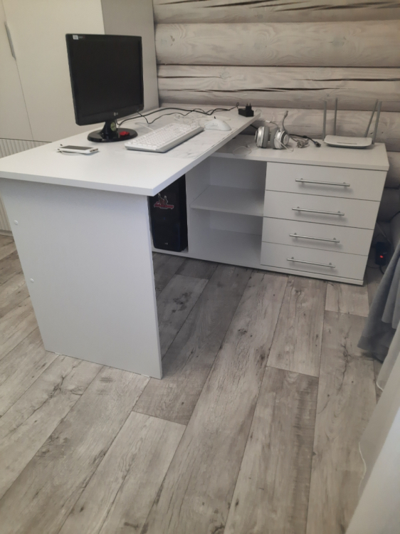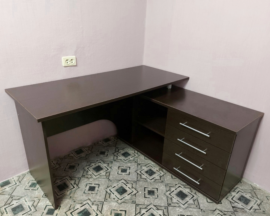 Стол может быть выполнен с правым или левым углом. Края изделия обработаны кантом ПВХ. Задняя стенка изготовлена из ЛДСП.Внутренний размер ящиков - 45,6 см х 34,6 см.
