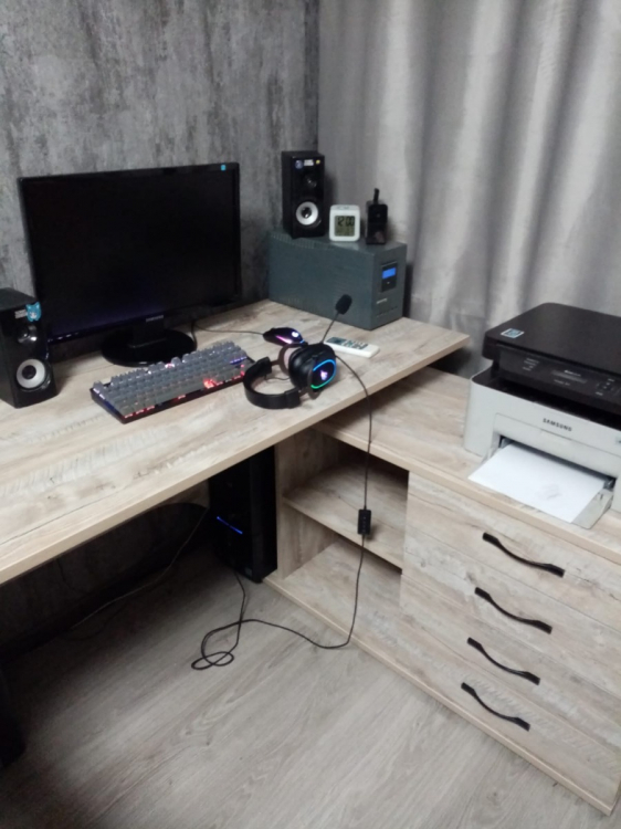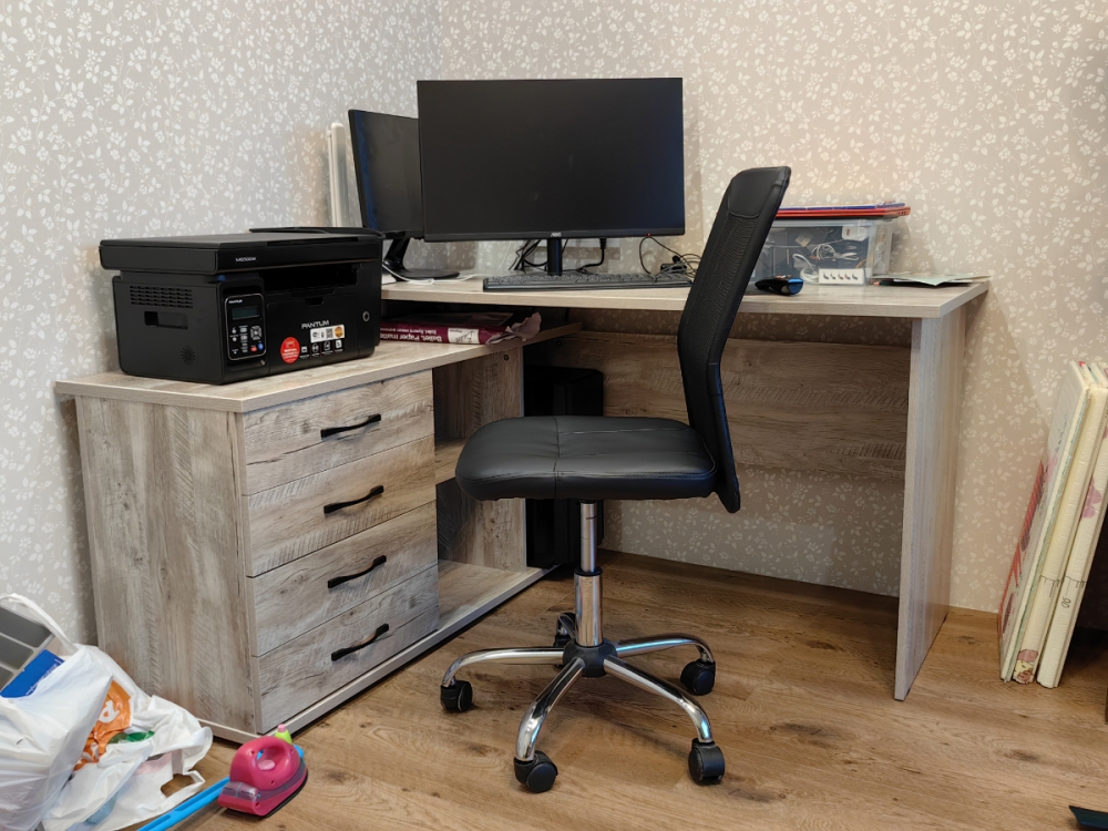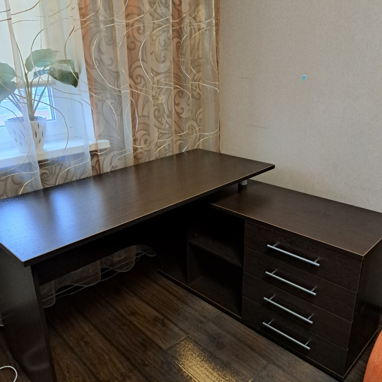 Стол удобный, качественный. Сборка простая, ребенок 11 летний практически весь стол собрал сам. В инструкции все подробно расписано. Столешницы из утолщенного дсп, края с пластиковой кромкой. Все сделано очень добротно, до мелочей. Устойчивость отличная, в интерьере смотрится шикарно.; Недостатки: нет