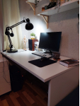 Долго думала перед приобретением стола, т.к. находила аналоги по меньшей цене с похожими параметрами, но в итоге взяла именно этот и вообще не пожалела. Очень приятный на ощупь, хорошо обработан, очень устойчивый. Собирается крайне легко, все крепления скрытые, но столешница очень тяжелая, так что тут мне понадобилась помощь. Порадовали регулирующиеся по высоте ножки: пол кривой, а с ними удалось выровнять стол, и при этом он даже не шатается. Время покажет, как он послужит, но пока я очень рада