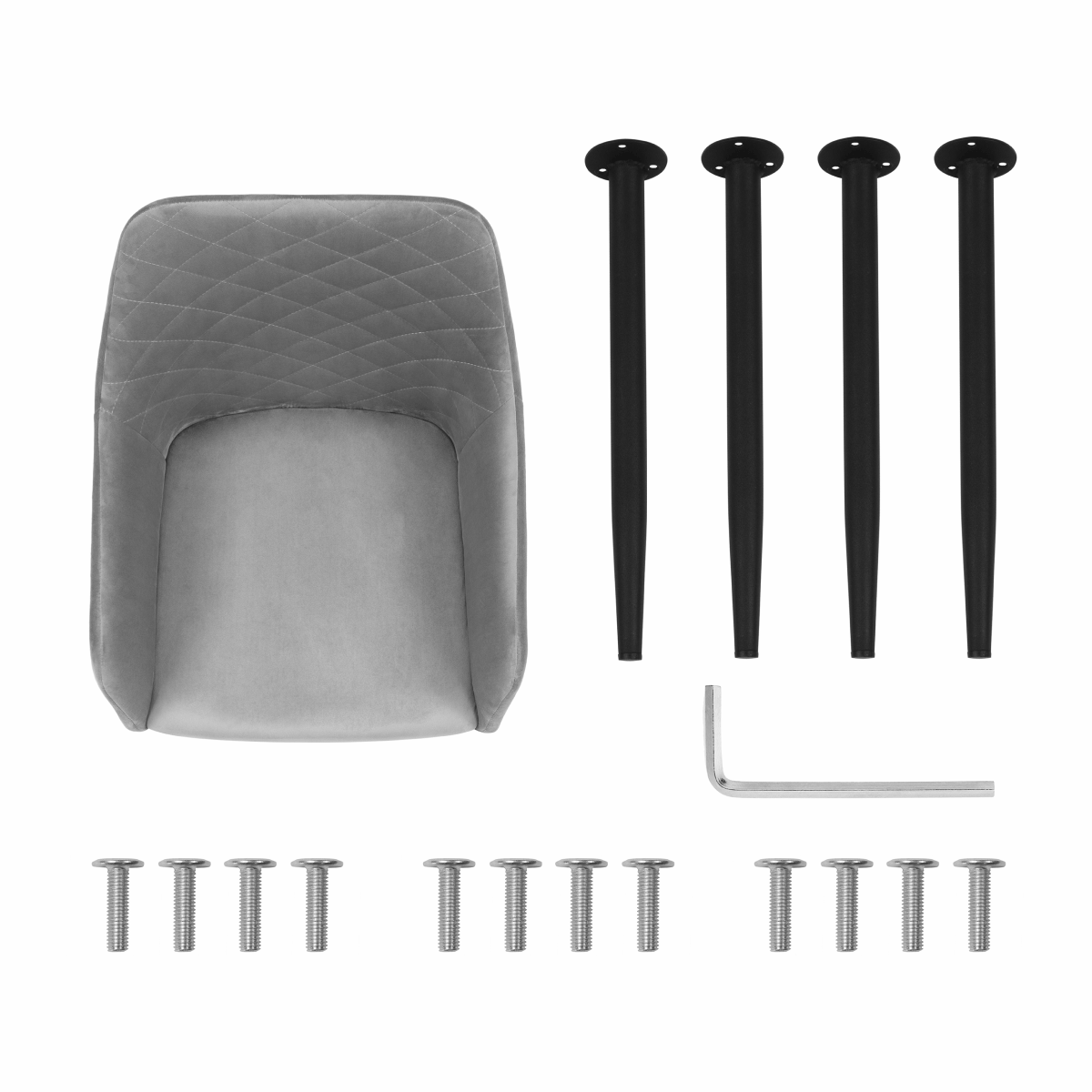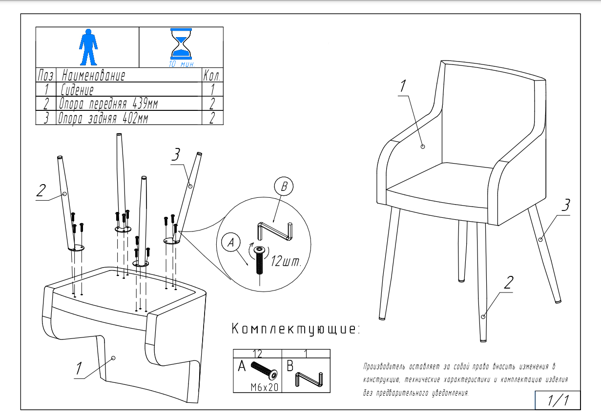 1. Выложите все содержимое коробки: фурнитура, сидушка, 4 ножки, 1 шестигранник.