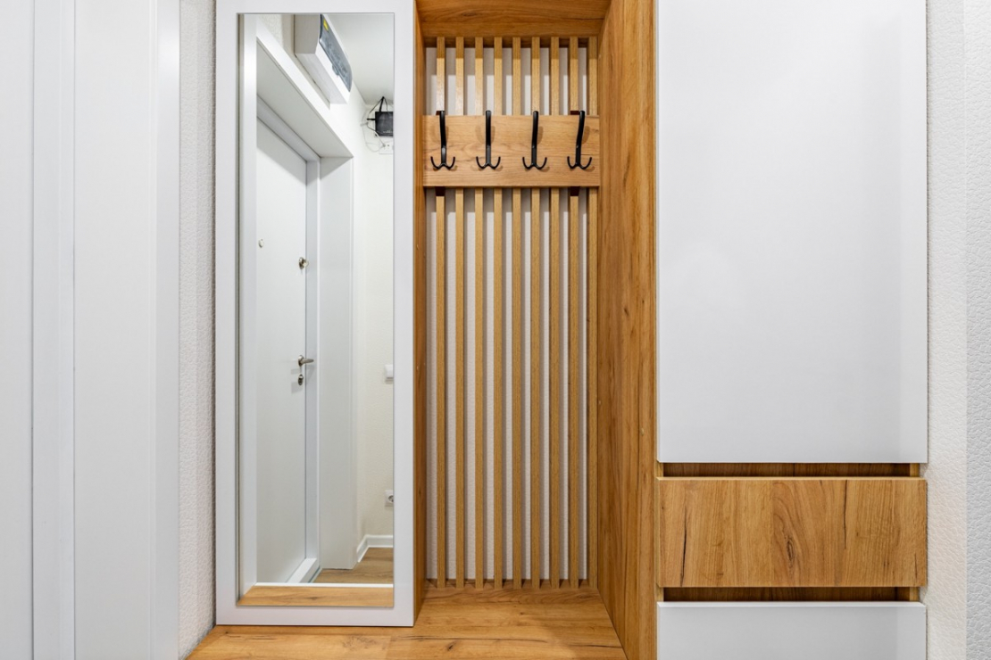 c вешалкой, с зеркалом, с ящиками, с распашными дверями, с сиденьем, с полками