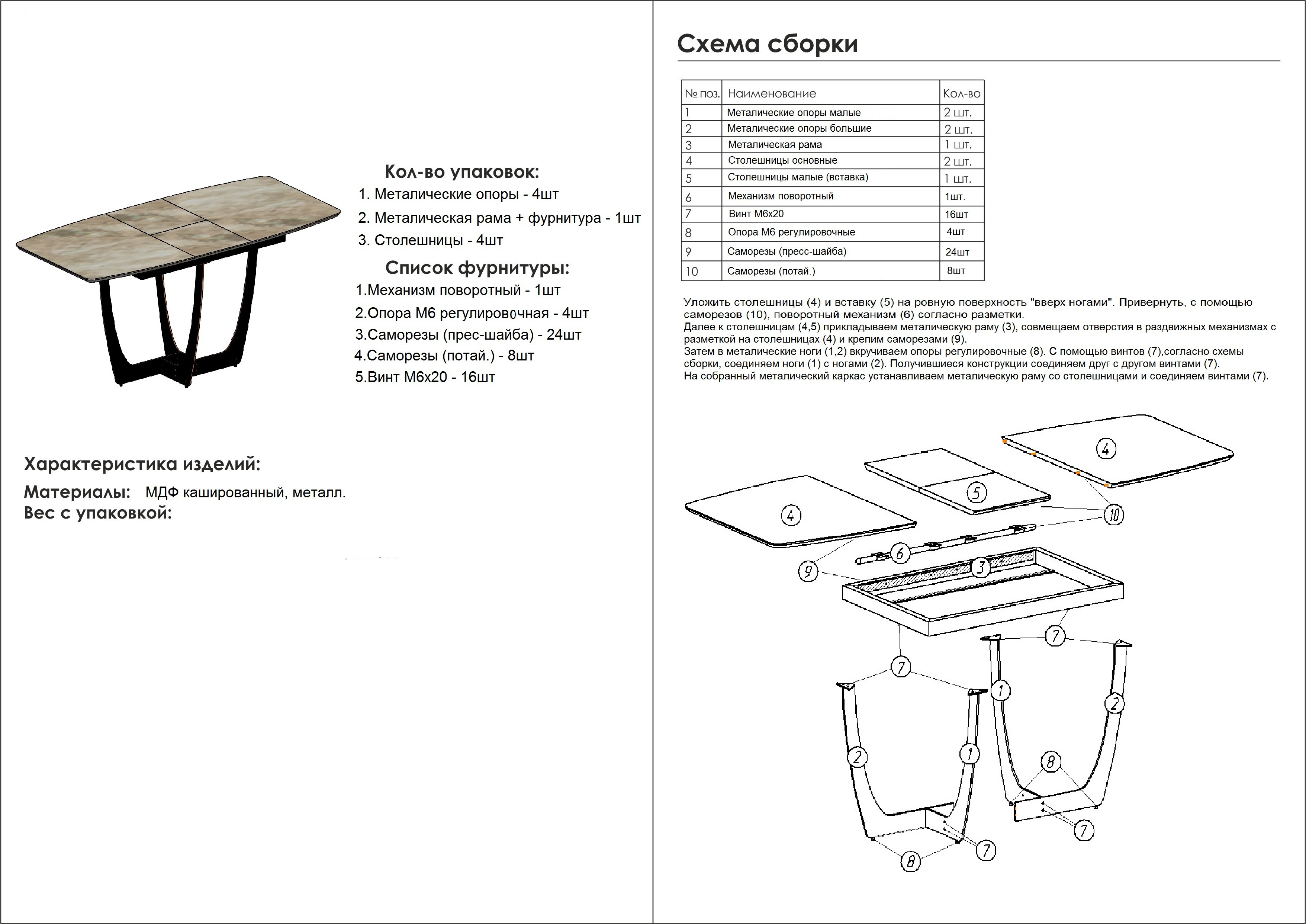 Стола (Д х Ш х В): 140 (180) х 85 х 76 см