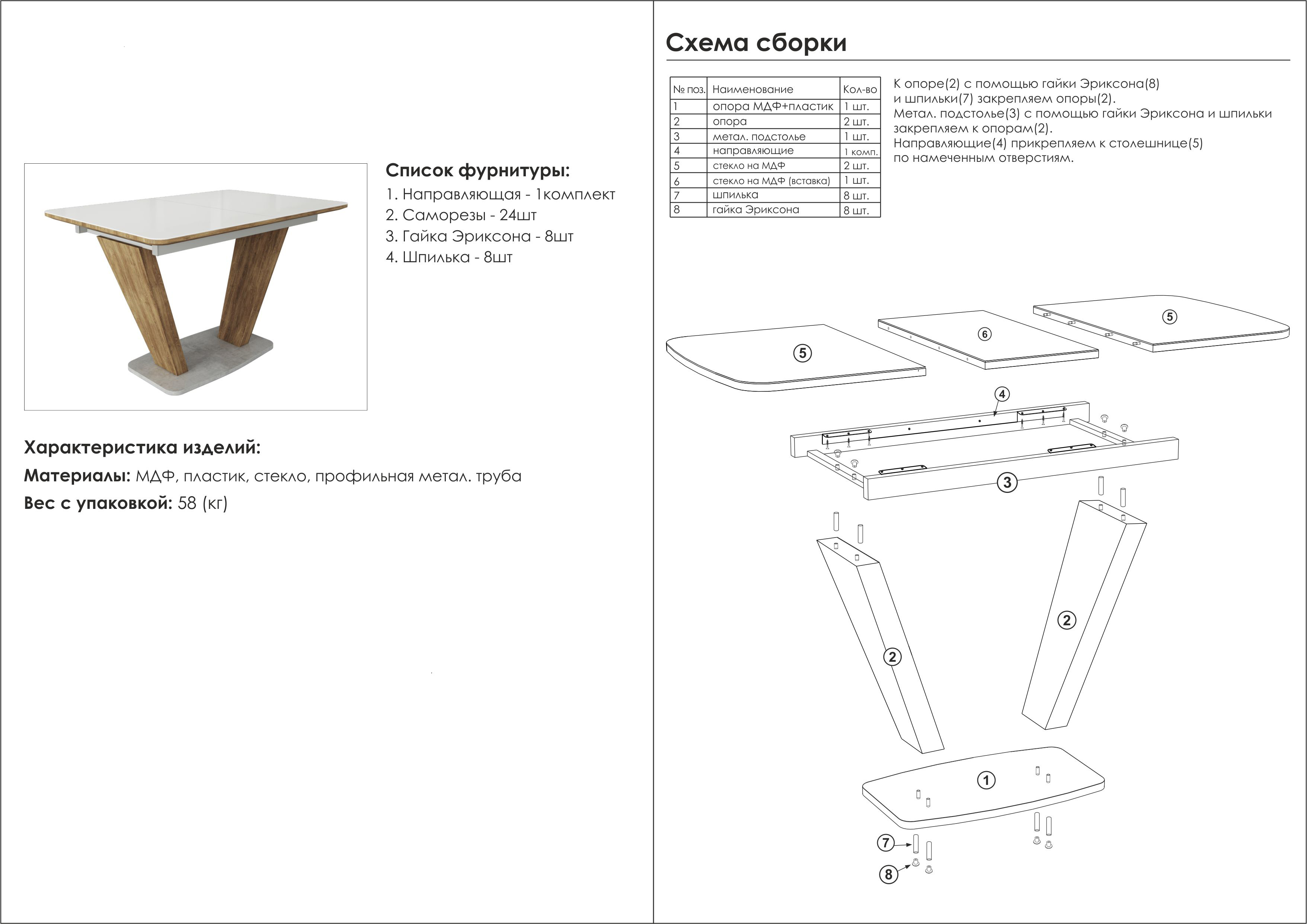 Стола (Д х Ш х В): 120 (160) х 80 х 77 см