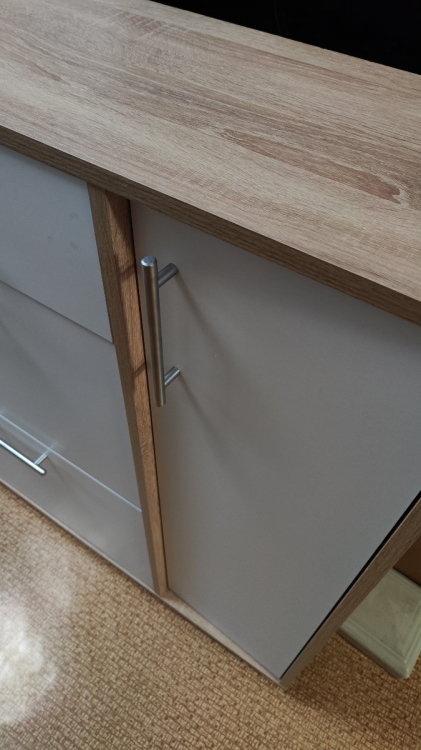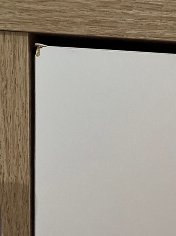 Шкаф в целом неплохой, но опечалил большой скол на внешней стороне верхнего ящика, прям на самом видном месте; Достоинства: Размеры, классическое сочетание цветов, функциональность; Недостатки: Отбитый край на внешней стороне ящика, неровное сопряжение всех ящиков, не самая удобная инструкция