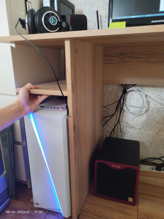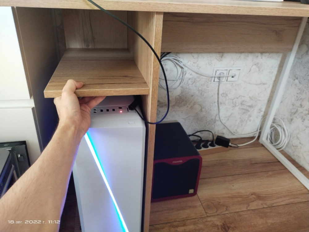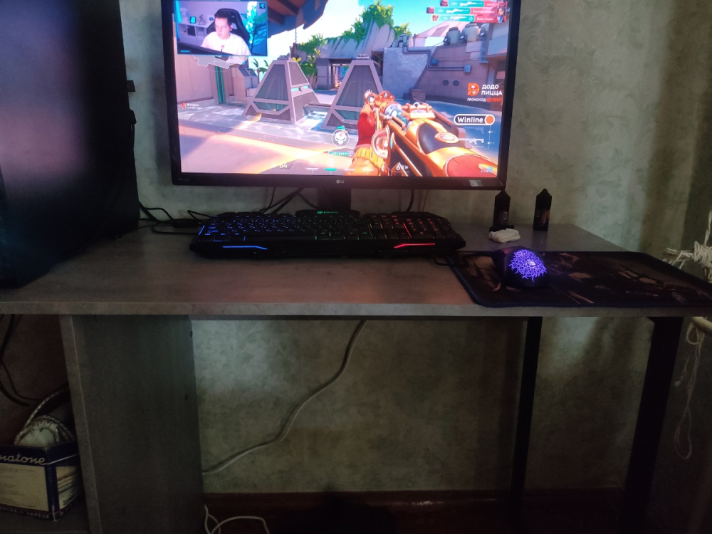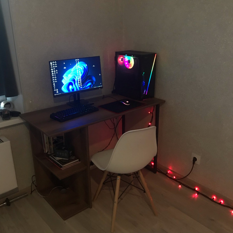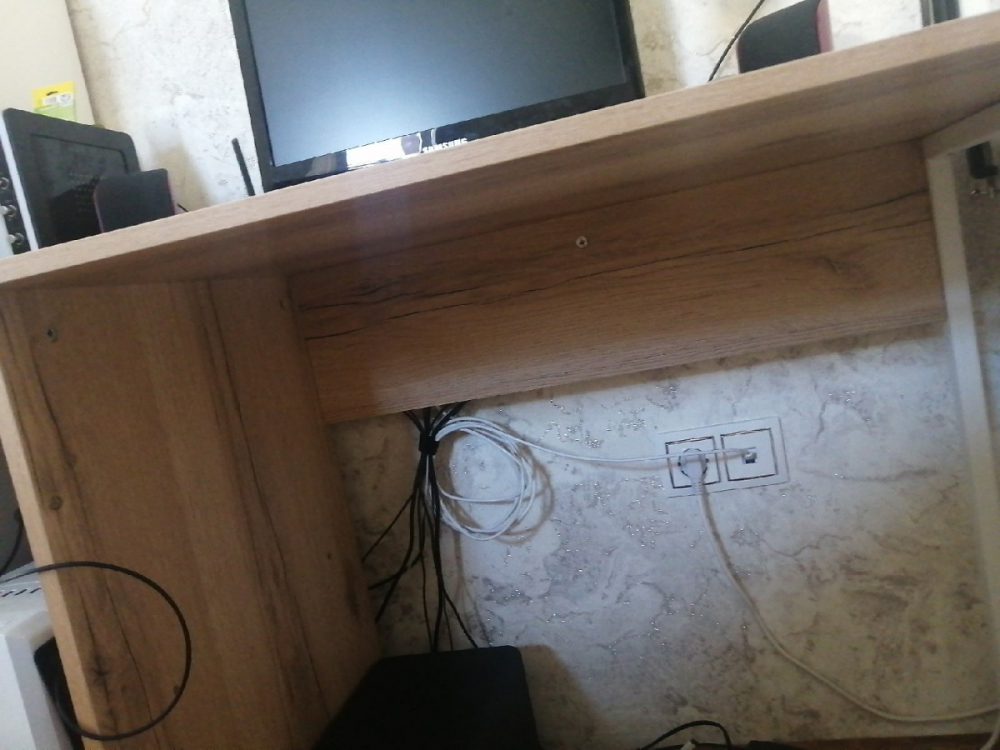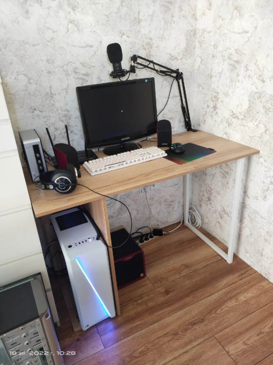 Это просто лучшая покупка, за последнее время. Прослужит я такой стол долго. Если думаете покупать - берите, точно не пожалеете! Выглядит в интерьере очень стильно! Очень рада, что такой товар можно приобрести даже не ехав в магазин, а просто заказать! Сделано качественно! Материал столешницы ЛДСП 16мм, достаточно крепкое (очень радует что не картон обитый двп-шкой как) все отверстия засверлены хорошо, доставка очень оперативная, в процессе транспортировки ничего не было повреждено (даже защитная коробка). Очень нравится порошковое покрытие ножки (подстолье металлическое), тактильно очень приятно. Кромки везде сделаны аккуратно. Цвет ламинации соответствует картинки. Цена и качество стола на высоте! Полочку будем перевешивать чуть выше, чтобы поместился системный блок. Всем советую к приобретению.