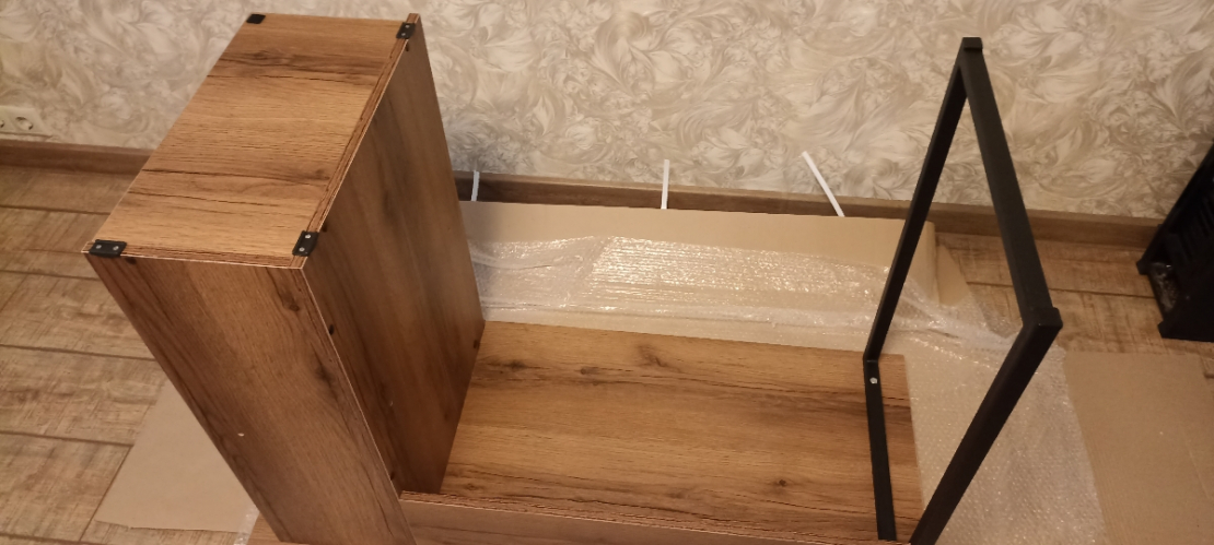 столом довольна за такую цену просто находка.; Достоинства: цена , брала за 5к . Легкая сборка , если облокачиваться на него он не прогибается . Очень приятный цвет.; Недостатки: очень острые углы пришлось докупать силиконовую насадку на угол. Если что-то не так закрутить начинает шататься и болтаться . Непрочный шестигранник , в самом конце сборки источился .