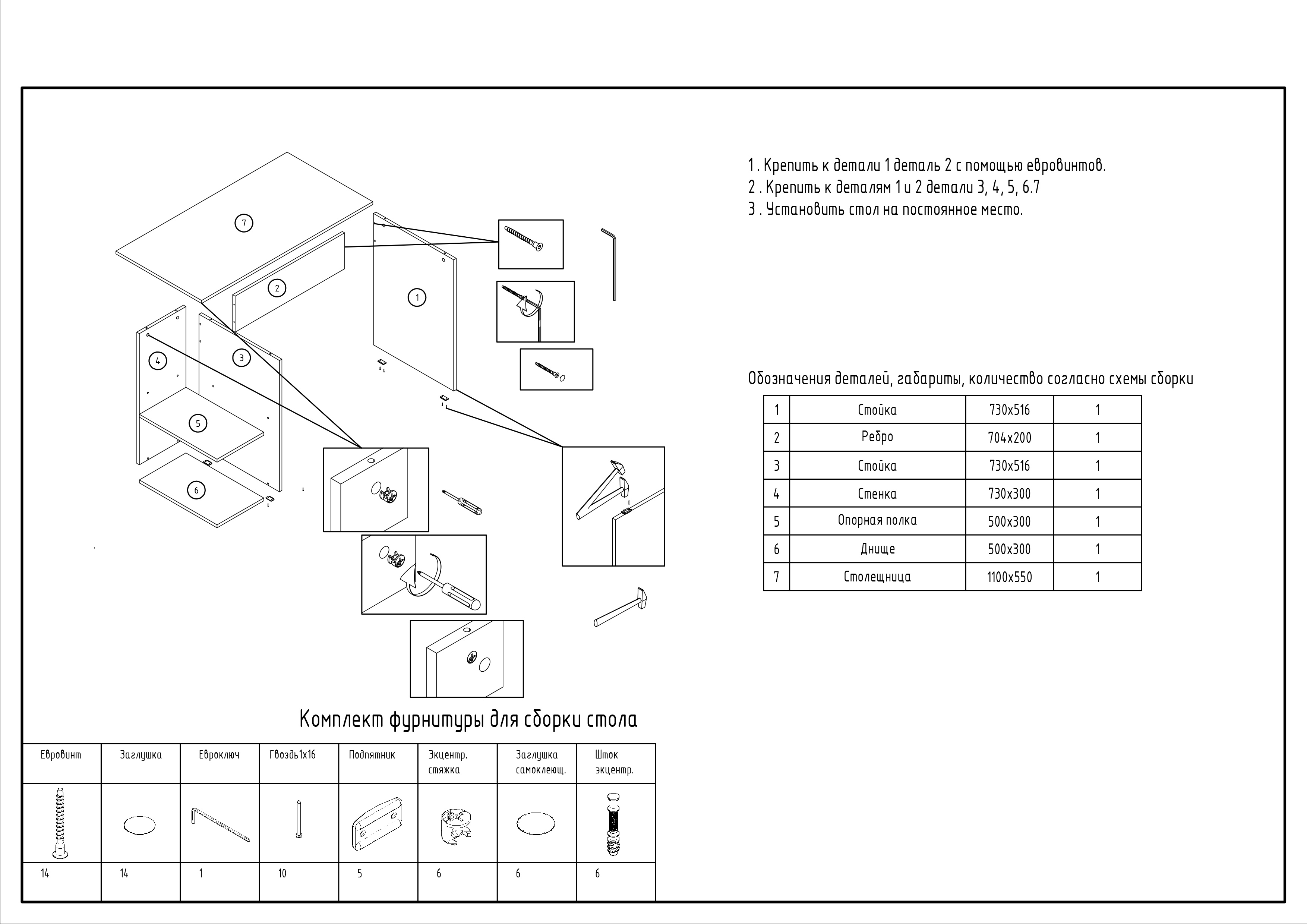 Толщина столешница: 1,5 см.