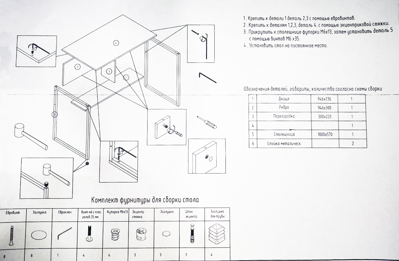 Толщина столешницы: 1,6 см