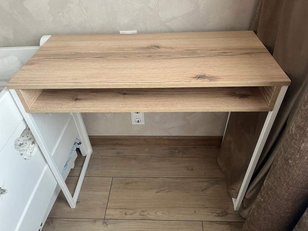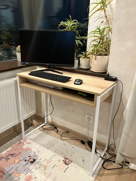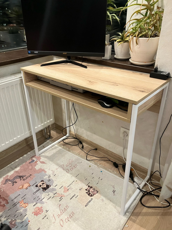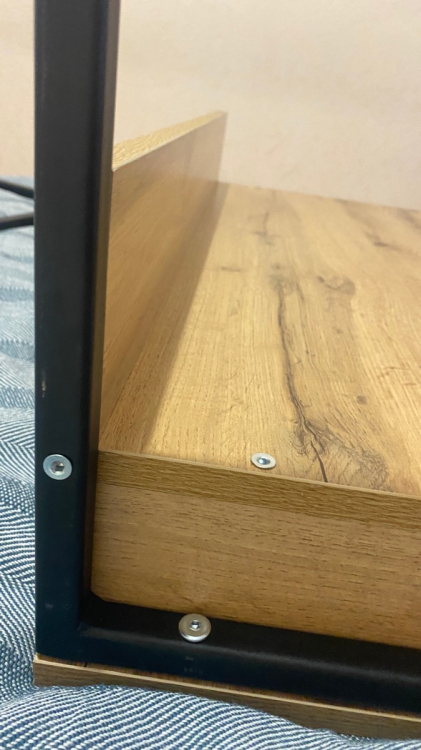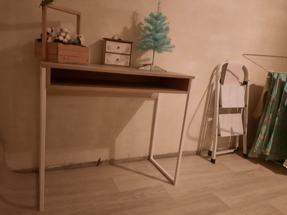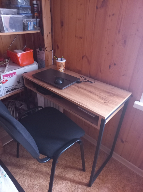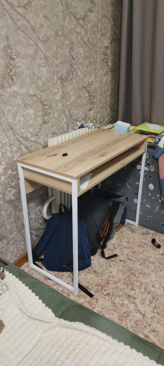 При принятии товара проверяйте отверстия в металлических конструкциях все должны быль сквозные. Меряйте размеры до покупки очень маленький стол, маленькое место для работы минимально нужно 75 см 50 мало.; Достоинства: Красивый цвет столешницы, достаточно аккуратно сделан и покрашен; Недостатки: Отсутствовало одно отверстие для крепления ноги стола, дорогая цена.
