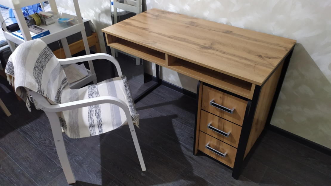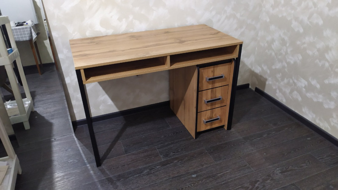 Отличный стол за эти деньги!Удобный ,очень стильный серый цвет ,минималистичный.Взяла для работы за ноутом.Подойдёт как парта ребёнку или как туалетный столик ,если прикрепить зеркало на стену и будет супер )В общем,покупкой осталась довольна !Немного трудновато собрать,инструкция не совсем понятна .Набрала в интернете как закрутить эти болты и все)В общем,все отлично!Доставили быстро,все на месте ,никаких сколов и т.д