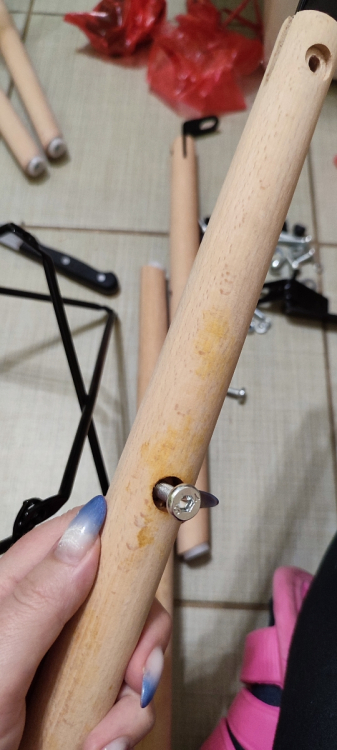Отличный стул, легко собрала по инструкции, правда нужна сила, чтобы хорошо затянуть болты. Прекрасно подходит и на кухню, и на дачу, и для рабочего стола. Сколов, царапин нет, отверстия все на своих местах. Лишних деталей тоже нет)) Когда соединяешь сидение и ножки, то нужно выкрутить пластиковые заглужки, что тоже удобно предусмотрено.; Достоинства: Современный, удобный; Недостатки: Лучше использовать нормальный ключ, чтобы затянуть болты. Тот, что в комплекте, гнется от усилий.