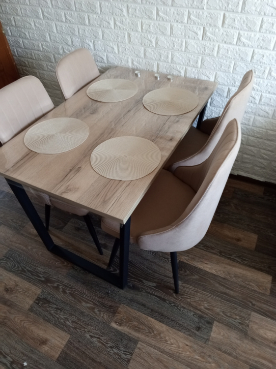 покупкой безумно довольны, за столом может спокойно поместиться 6 человек; Достоинства: шикарный стол, очень быстро собирается, все для сборки в комплекте кромка на столешнице очень хорошо сделана и есть регулировочные опоры, чтобы выровнять стол, если вдруг пол не ровный; Недостатки: абсолютно никаких недостатков